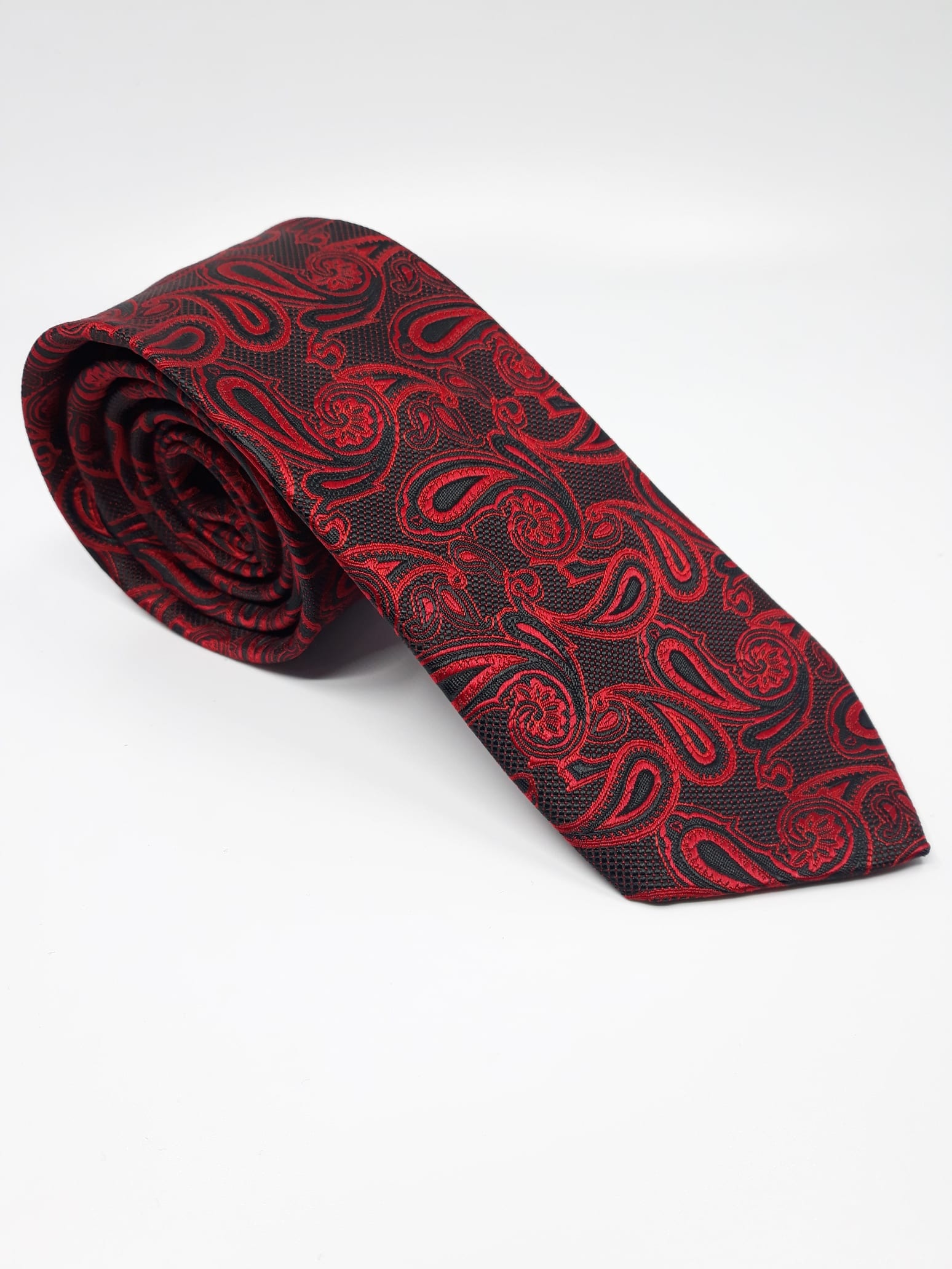 Krawat o klasycznym i modnym kroju, wykonany ze sztucznego jedwabiu. Jest on bardzo ważnym elementem ubioru, dzięki któremu każdy mężczyzna może wnieść do swojego stroju odrobinę koloru. Kompletując garderobę należy pamiętać, aby krawat tworzył spójny zestaw z koszulą i marynarką. Jego unikatowy wzór z pewnością spełni swoją funkcję w połączeniu z różnymi tkaninami w kilku wariantach kolorystycznych. Ponadto wyraźne i mocne akcenty zdobnicze dodadzą charakteru i pozwolą wyróżnić się stylem. Krawat można dobrać zarówno do karnacji, garnituru jak i temperamentu.