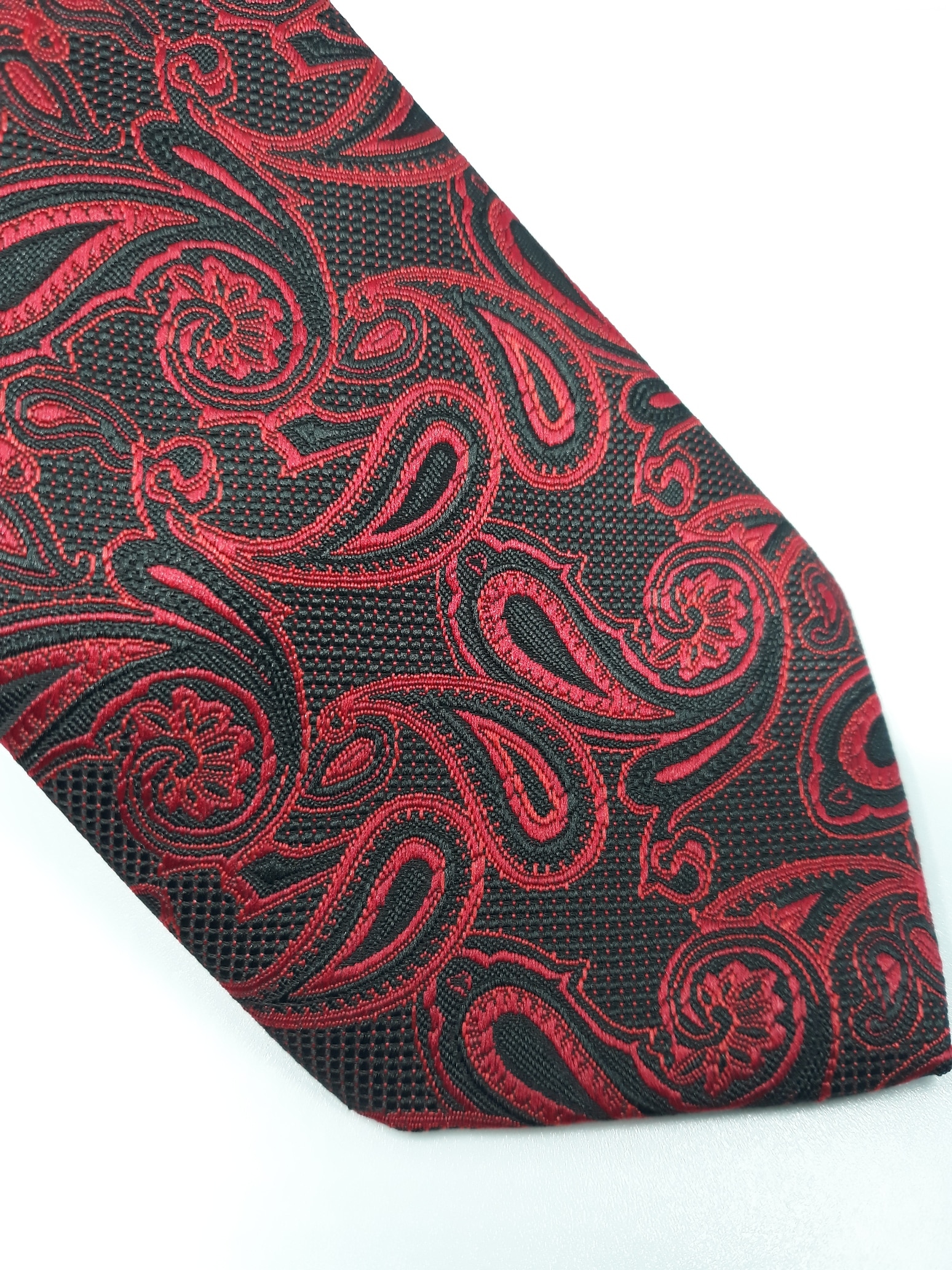 Elegancki Krawat Czarny z Czerwonymi Dodatkami