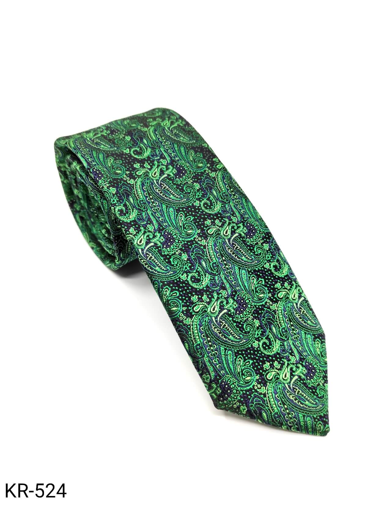 Elegancki Krawat Czarny Zielony Wzór