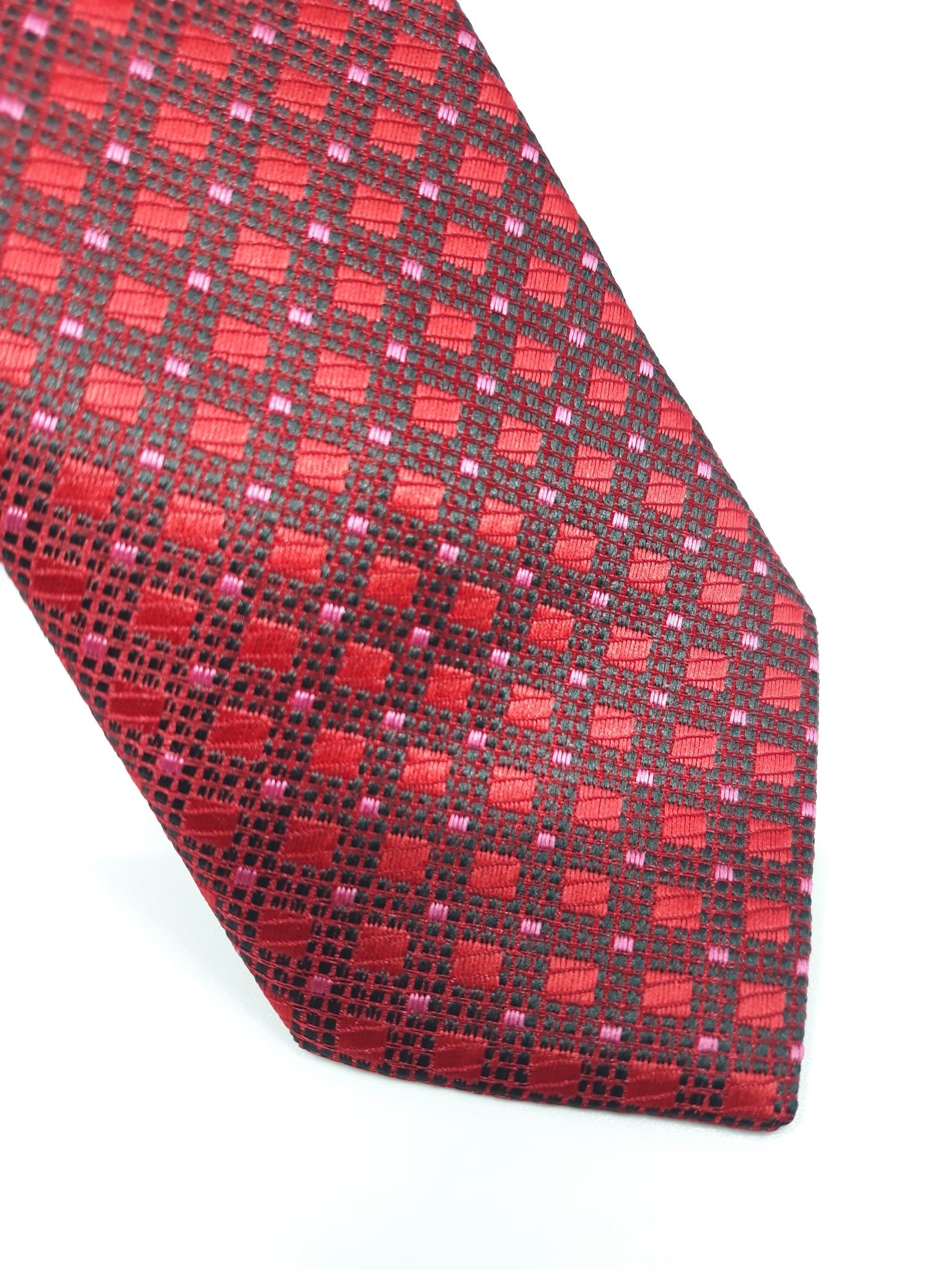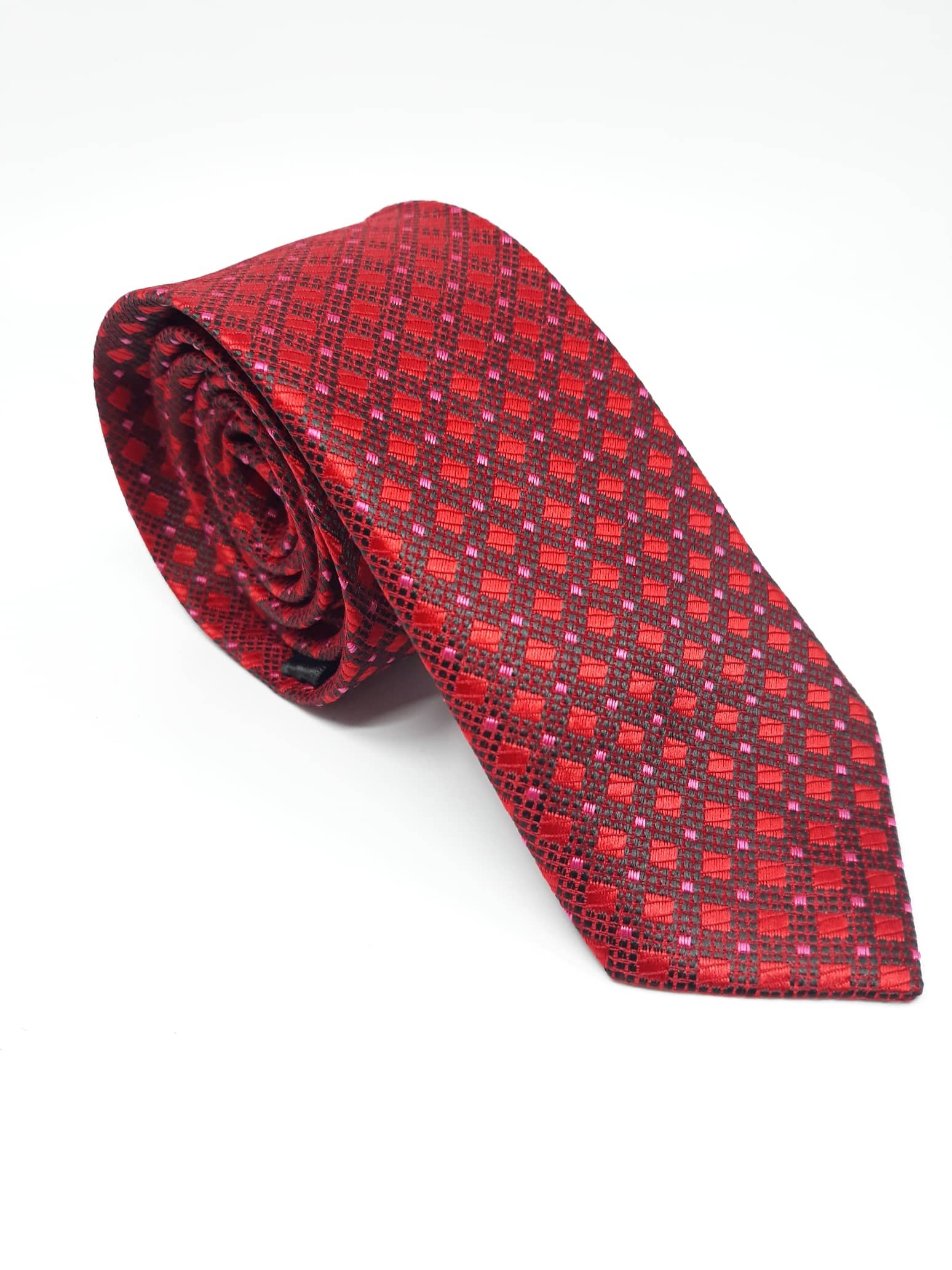 Elegancki krawat męski firmy Piotr o klasycznym i modnym kroju, czerwono bordowy w romby. Krawat o klasycznym i modnym kroju, wykonany ze sztucznego jedwabiu. Jest on bardzo ważnym elementem ubioru, dzięki któremu każdy mężczyzna może wnieść do swojego stroju odrobinę koloru. Kompletując garderobę należy pamiętać, aby krawat tworzył spójny zestaw z marynarką lub koszulą. Jego unikatowy wzór z pewnością spełni swoją funkcję w połączeniu z różnymi tkaninami w kilku wariantach kolorystycznych. Ponadto wyraźne i mocne akcenty zdobnicze dodadzą charakteru i pozwolą wyróżnić się stylem. Krawat można dobrać zarówno do karnacji, garnituru jak i temperamentu.