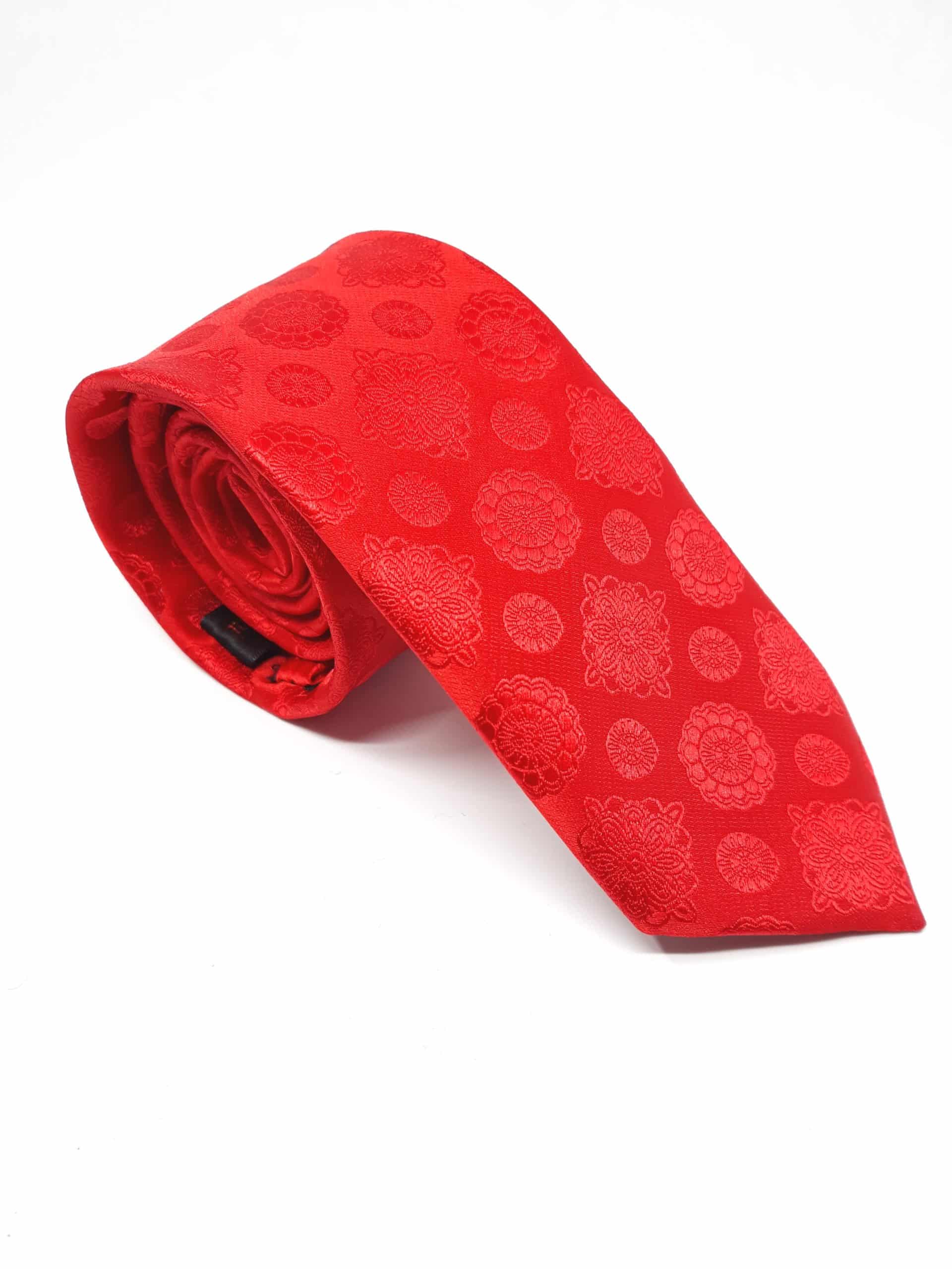Krawat o klasycznym i modnym kroju, wykonany ze sztucznego jedwabiu. Jest on bardzo ważnym elementem ubioru, dzięki któremu każdy mężczyzna może wnieść do swojego stroju odrobinę koloru. Kompletując garderobę należy pamiętać, aby krawat tworzył spójny zestaw z marynarką lub koszulą. Jego unikatowy wzór z pewnością spełni swoją funkcję w połączeniu z różnymi tkaninami w kilku wariantach kolorystycznych. Ponadto wyraźne i mocne akcenty zdobnicze dodadzą charakteru i pozwolą wyróżnić się stylem. Krawat można dobrać zarówno do karnacji, garnituru jak i temperamentu.