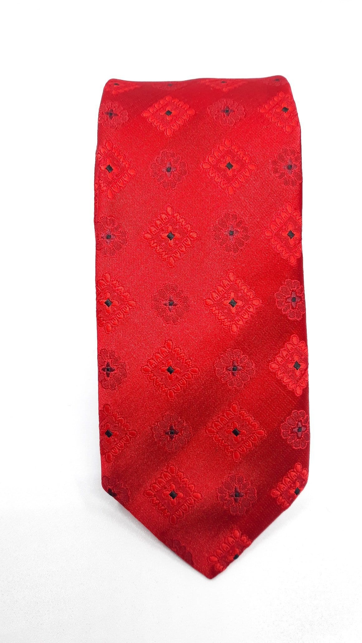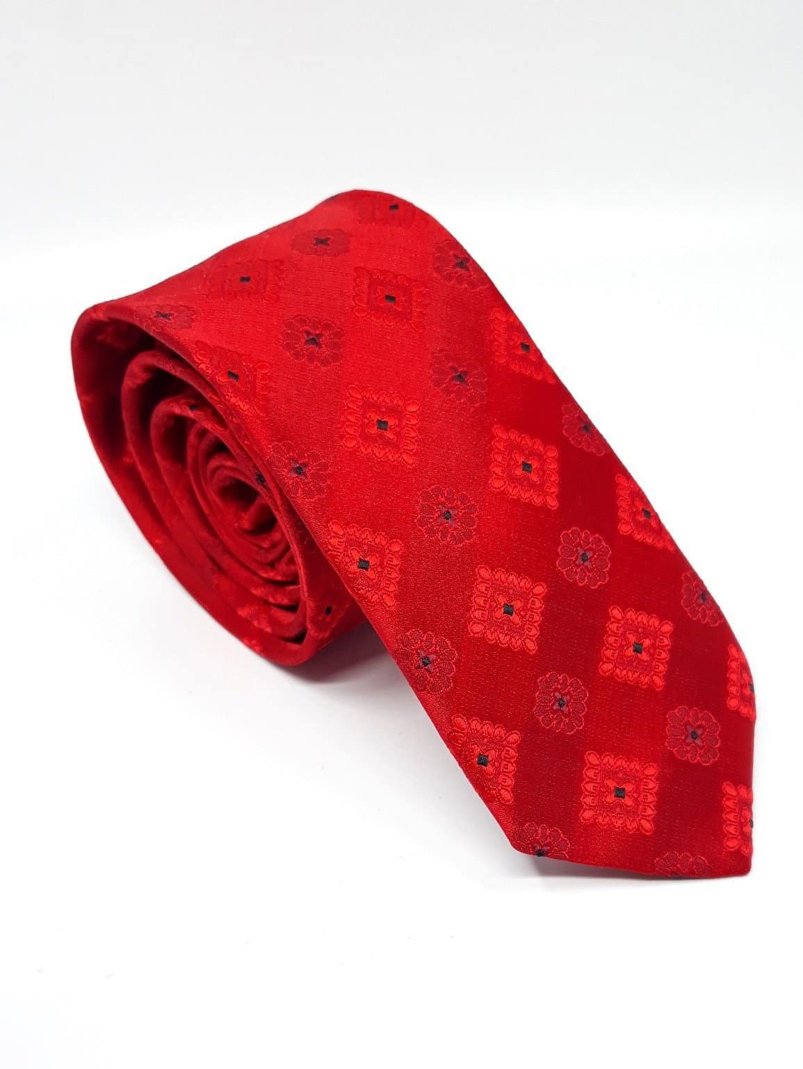 Elegancki krawat męski firmy Piotr o klasycznym i modnym kroju, czerwony w kwadraty.Krawat o klasycznym i modnym kroju, wykonany ze sztucznego jedwabiu. Jest on bardzo ważnym elementem ubioru, dzięki któremu każdy mężczyzna może wnieść do swojego stroju odrobinę koloru. Kompletując garderobę należy pamiętać, aby krawat tworzył spójny zestaw z marynarką lub koszulą. Jego unikatowy wzór z pewnością spełni swoją funkcję w połączeniu z różnymi tkaninami w kilku wariantach kolorystycznych. Ponadto wyraźne i mocne akcenty zdobnicze dodadzą charakteru i pozwolą wyróżnić się stylem. Krawat można dobrać zarówno do karnacji, garnituru jak i temperamentu.