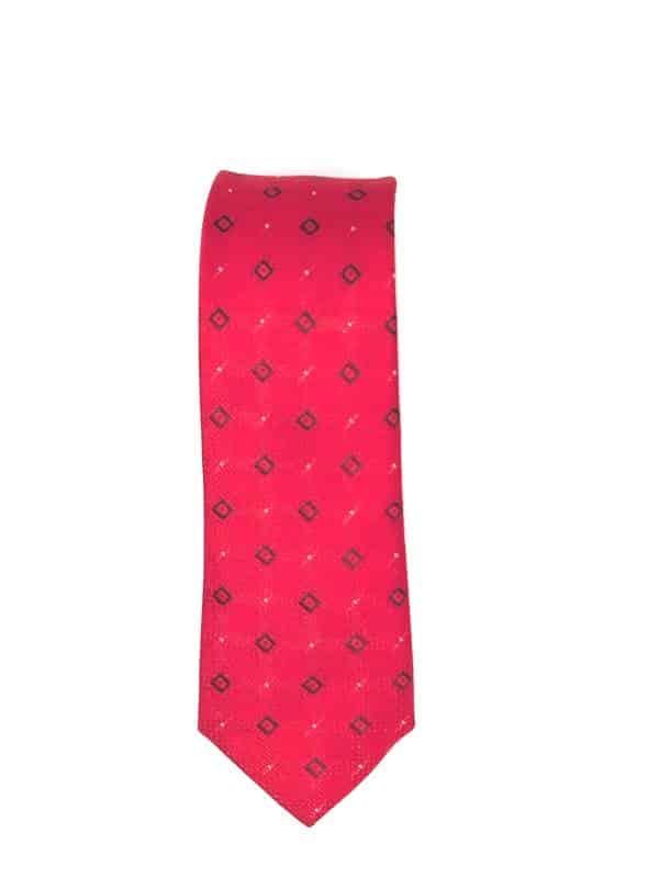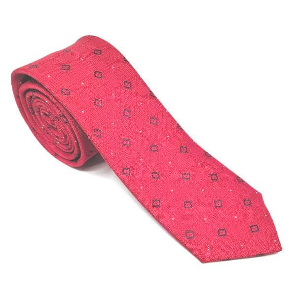 Elegancki krawat męski firmy Piotr, czerwony w ciemne romby. Krawat o klasycznym i modnym kroju, wykonany ze sztucznego jedwabiu. Jest on bardzo ważnym elementem ubioru, dzięki któremu każdy mężczyzna może wnieść do swojego stroju odrobinę koloru. Kompletując garderobę należy pamiętać, aby krawat tworzył spójny zestaw z marynarką lub koszulą. Jego unikatowy wzór z pewnością spełni swoją funkcję w połączeniu z różnymi tkaninami w kilku wariantach kolorystycznych. Ponadto wyraźne i mocne akcenty zdobnicze dodadzą charakteru i pozwolą wyróżnić się stylem. Krawat można dobrać zarówno do karnacji, garnituru jak i temperamentu.