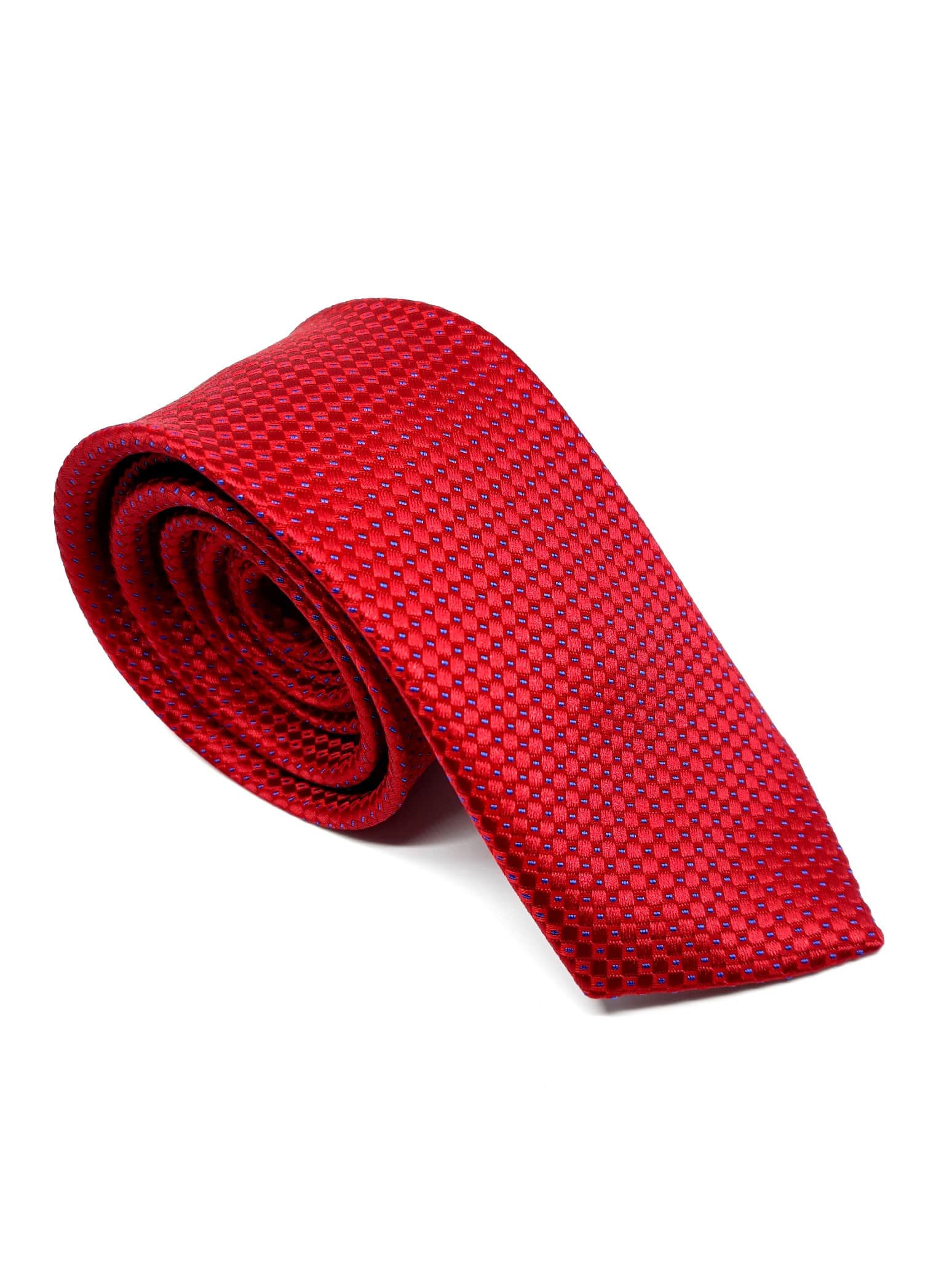 Elegancki krawat męski firmy Piotr o klasycznym i modnym kroju, czerwony w szafirowe małe kreseczki. Krawat o klasycznym i modnym kroju, wykonany ze sztucznego jedwabiu. Jest on bardzo ważnym elementem ubioru, dzięki któremu każdy mężczyzna może wnieść do swojego stroju odrobinę koloru. Kompletując garderobę należy pamiętać, aby krawat tworzył spójny zestaw z marynarką lub koszulą. Jego unikatowy wzór z pewnością spełni swoją funkcję w połączeniu z różnymi tkaninami w kilku wariantach kolorystycznych. Ponadto wyraźne i mocne akcenty zdobnicze dodadzą charakteru i pozwolą wyróżnić się stylem. Krawat można dobrać zarówno do karnacji, garnituru jak i temperamentu.