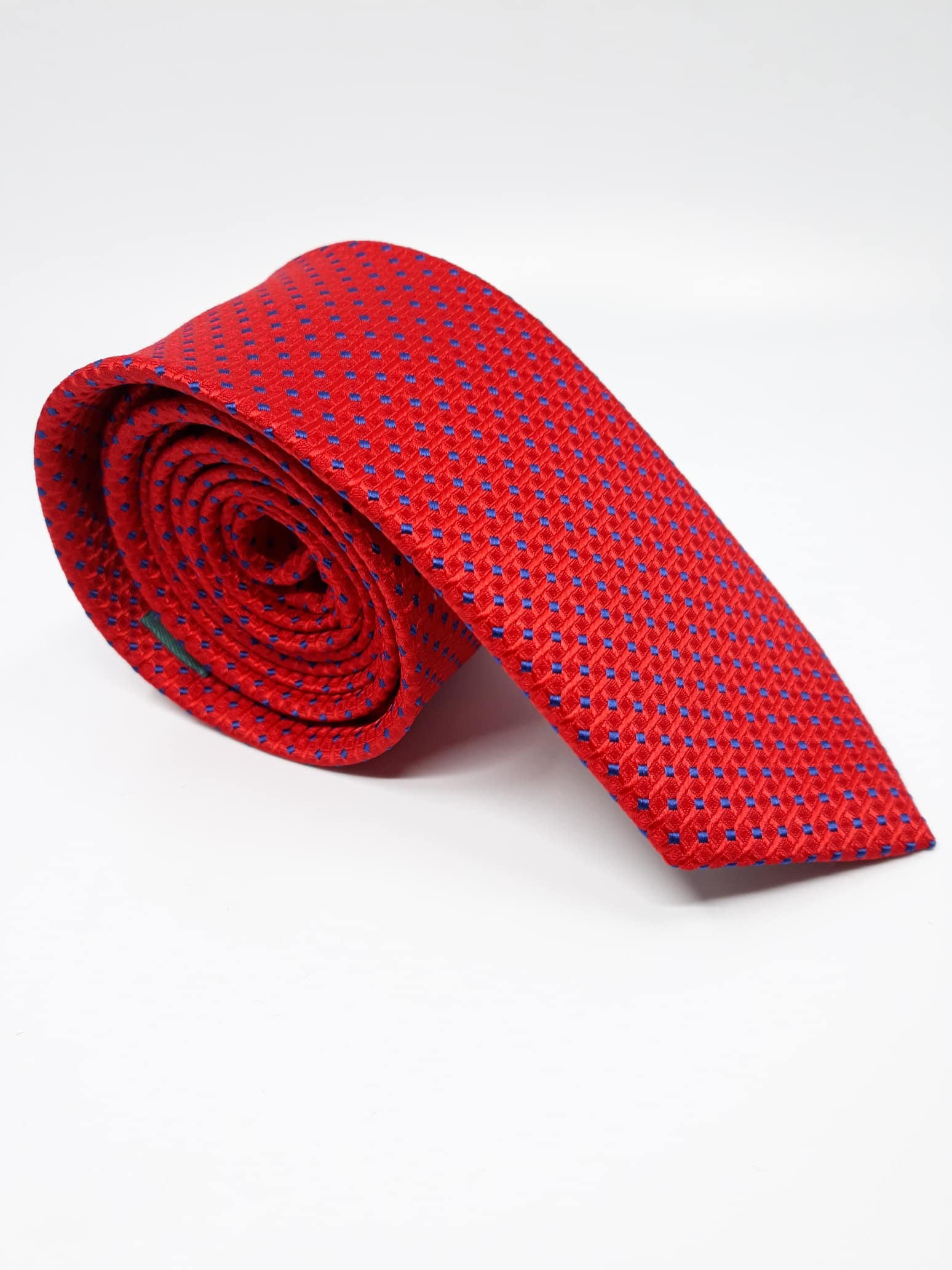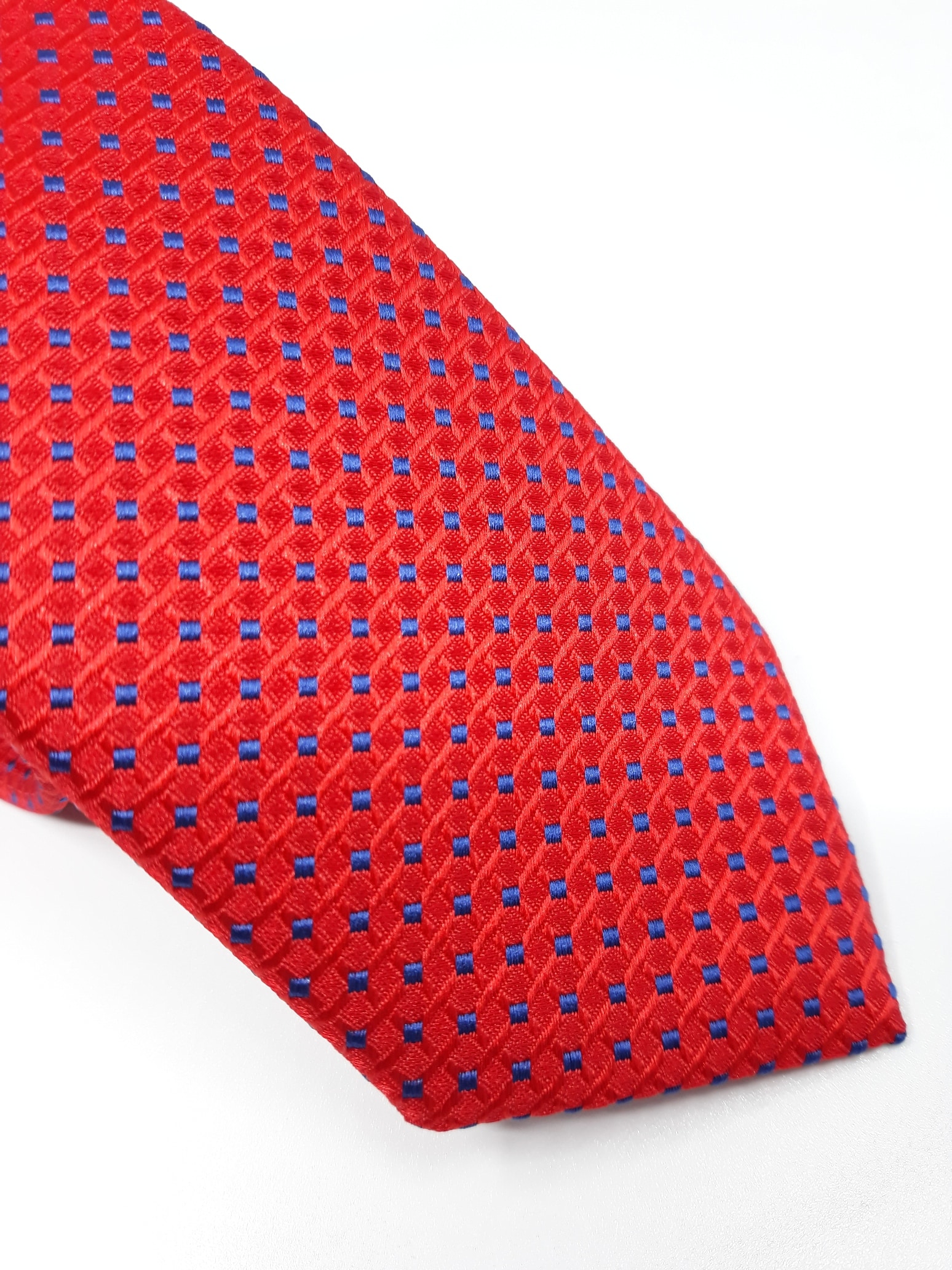 Elegancki krawat męski firmy Piotr o klasycznym i modnym kroju, czerwony w szafirowe kropki. Krawat o klasycznym i modnym kroju, wykonany ze sztucznego jedwabiu. Jest on bardzo ważnym elementem ubioru, dzięki któremu każdy mężczyzna może wnieść do swojego stroju odrobinę koloru. Kompletując garderobę należy pamiętać, aby krawat tworzył spójny zestaw z marynarką lub koszulą. Jego unikatowy wzór z pewnością spełni swoją funkcję w połączeniu z różnymi tkaninami w kilku wariantach kolorystycznych. Ponadto wyraźne i mocne akcenty zdobnicze dodadzą charakteru i pozwolą wyróżnić się stylem. Krawat można dobrać zarówno do karnacji, garnituru jak i temperamentu.