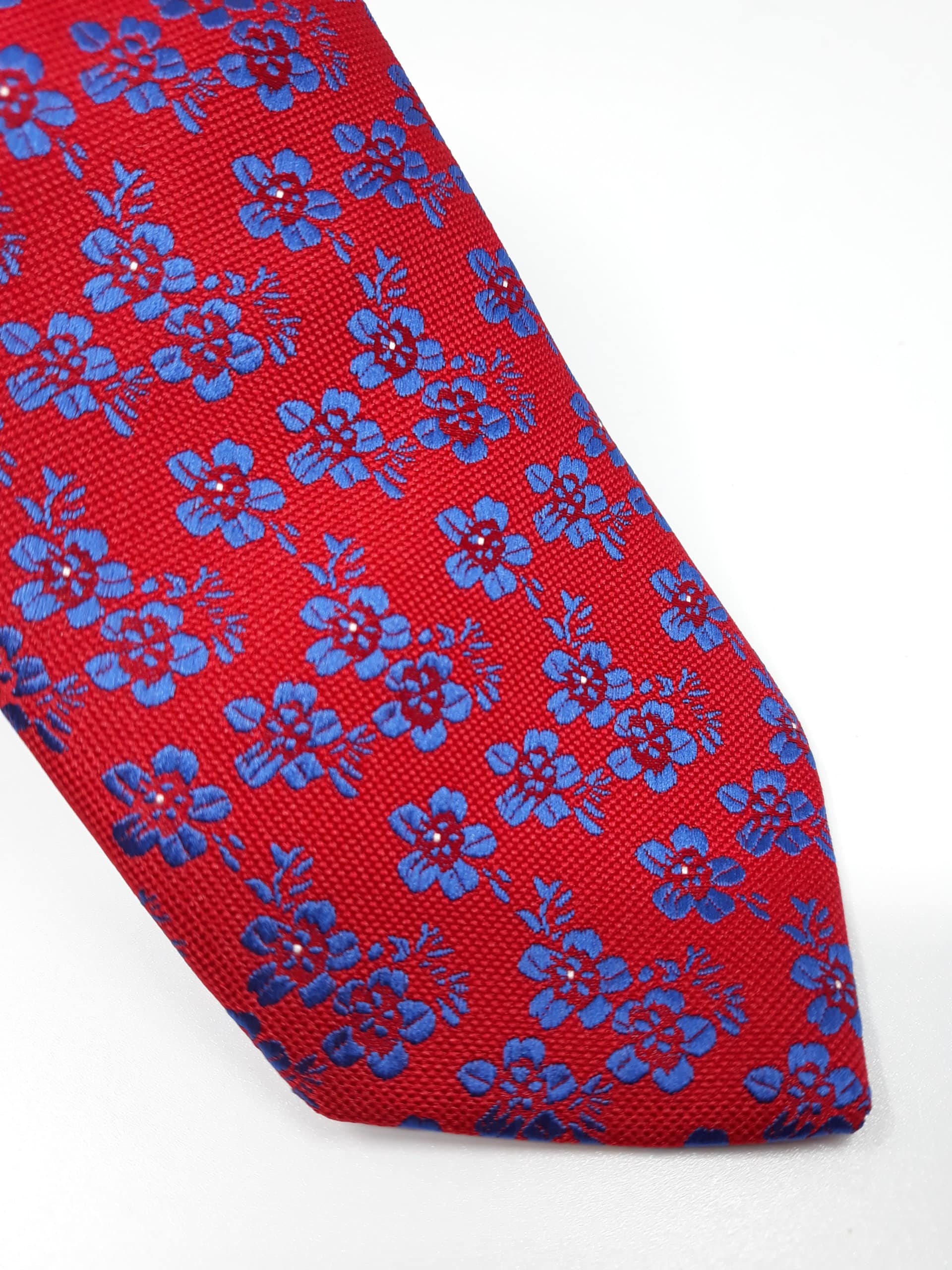 Elegancki Krawat Czerwony Szafirowe Kwiatuszki