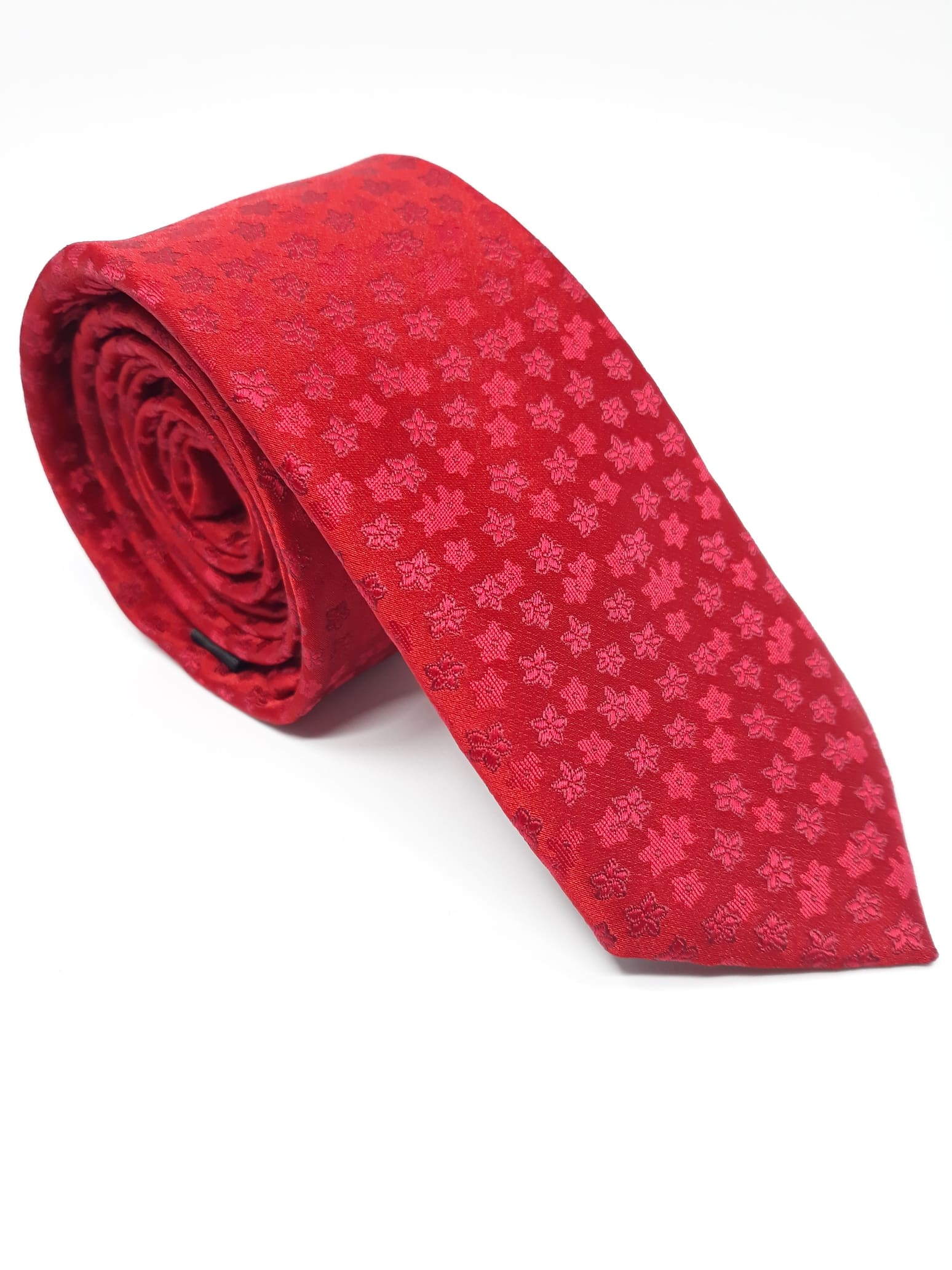 Elegancki krawat męski firmy Roberto Gabbani o klasycznym i modnym kroju, czerwony w tłoczone kwiatki. Krawat o klasycznym i modnym kroju, wykonany z miekkiej microfibry. Jest on bardzo ważnym elementem ubioru, dzięki któremu każdy mężczyzna może wnieść do swojego stroju odrobinę koloru. Kompletując garderobę należy pamiętać, aby krawat tworzył spójny zestaw z marynarką lub koszulą. Jego unikatowy wzór z pewnością spełni swoją funkcję w połączeniu z różnymi tkaninami w kilku wariantach kolorystycznych. Ponadto wyraźne i mocne akcenty zdobnicze dodadzą charakteru i pozwolą wyróżnić się stylem. Krawat można dobrać zarówno do karnacji, garnituru jak i temperamentu.