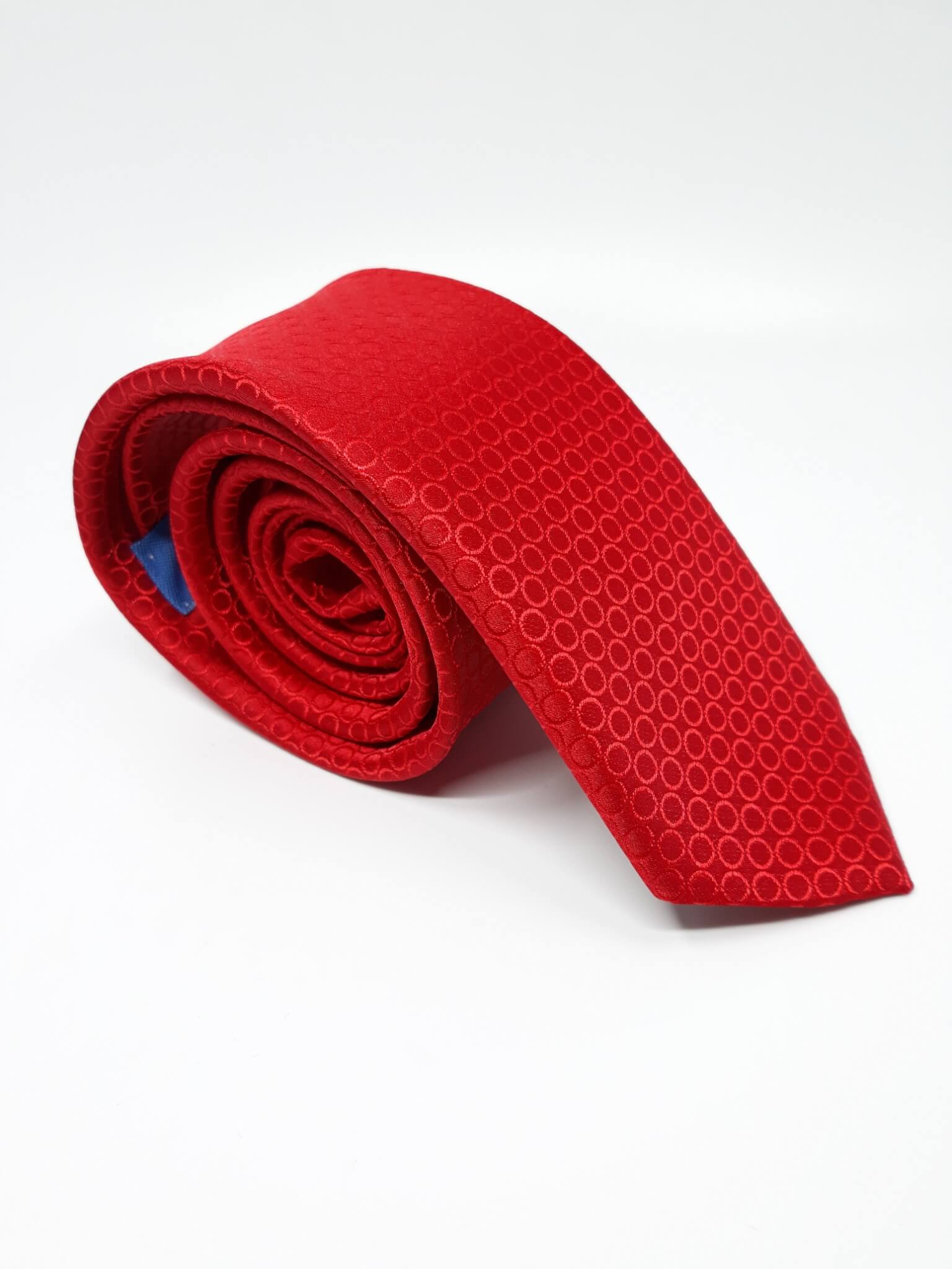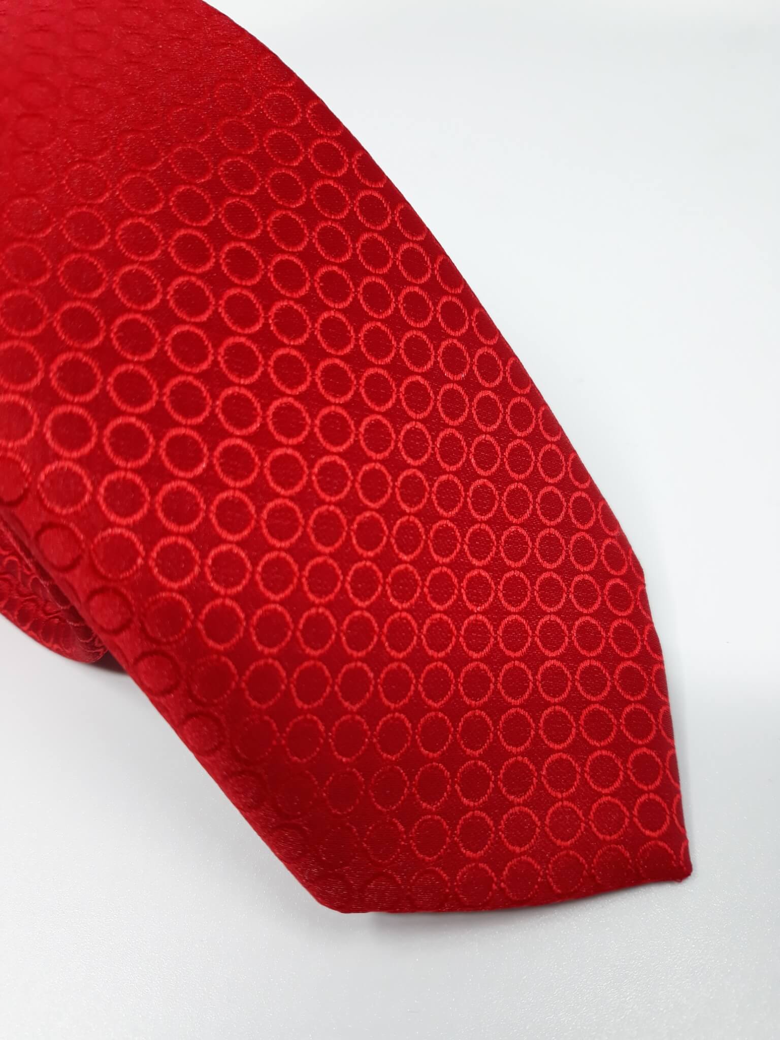 Elegancki krawat męski firmy Piotr o klasycznym i modnym kroju, czerwony tłoczony. Krawat o klasycznym i modnym kroju, wykonany ze sztucznego jedwabiu. Jest on bardzo ważnym elementem ubioru, dzięki któremu każdy mężczyzna może wnieść do swojego stroju odrobinę koloru. Kompletując garderobę należy pamiętać, aby krawat tworzył spójny zestaw z marynarką lub koszulą. Jego unikatowy wzór z pewnością spełni swoją funkcję w połączeniu z różnymi tkaninami w kilku wariantach kolorystycznych. Ponadto wyraźne i mocne akcenty zdobnicze dodadzą charakteru i pozwolą wyróżnić się stylem. Krawat można dobrać zarówno do karnacji, garnituru jak i temperamentu.