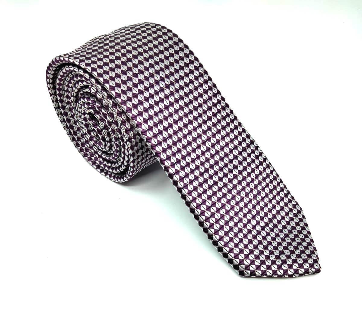 Elegancki krawat fiolet szachownica
