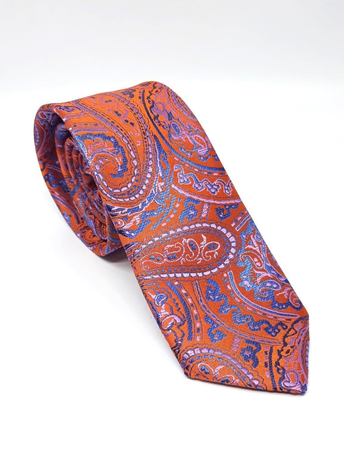 Elegancki krawat męski firmy Piotr o klasycznym i modnym kroju, pomarańczowy w fioletowo granatowy wzór.Krawat o klasycznym i modnym kroju, wykonany ze sztucznego jedwabiu. Jest on bardzo ważnym elementem ubioru, dzięki któremu każdy mężczyzna może wnieść do swojego stroju odrobinę koloru. Kompletując garderobę należy pamiętać, aby krawat tworzył spójny zestaw z marynarką lub koszulą. Jego unikatowy wzór z pewnością spełni swoją funkcję w połączeniu z różnymi tkaninami w kilku wariantach kolorystycznych. Ponadto wyraźne i mocne akcenty zdobnicze dodadzą charakteru i pozwolą wyróżnić się stylem. Krawat można dobrać zarówno do karnacji, garnituru jak i temperamentu.