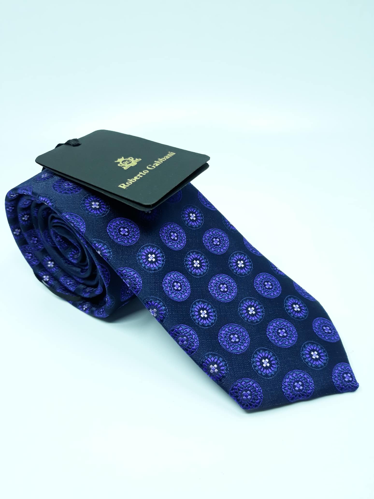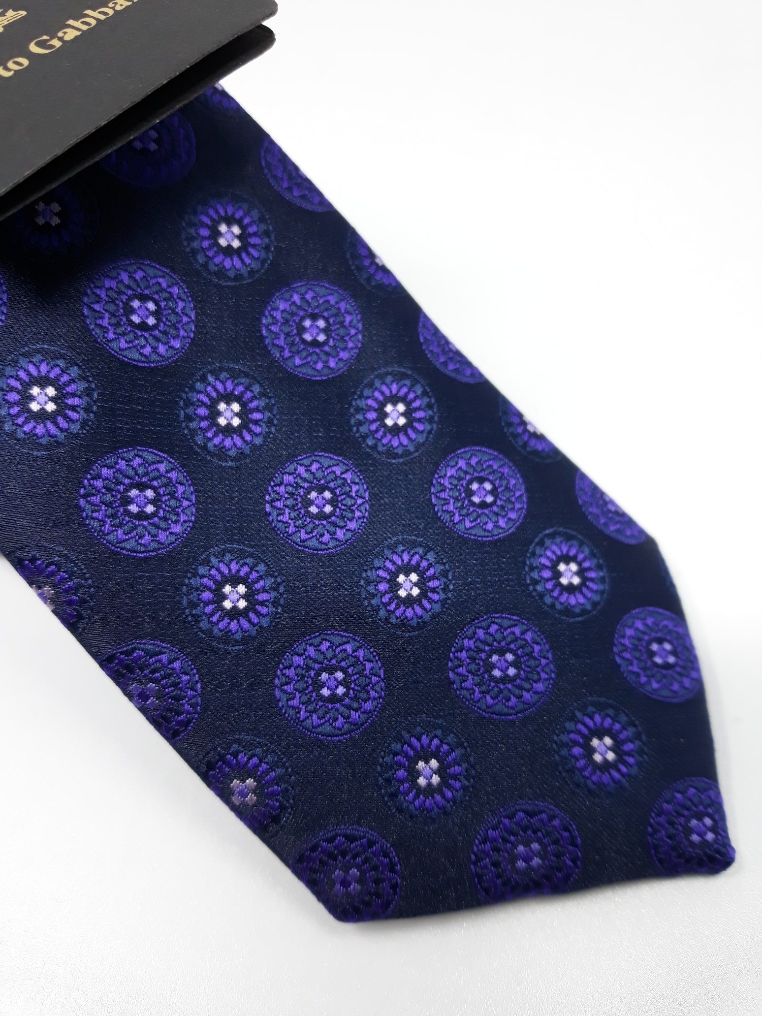 Elegancki krawat męski firmy Roberto Gabbani o klasycznym i modnym kroju, fioletowo granatowy we wzór. Krawat o klasycznym i modnym kroju, wykonany z miękkiej microfibry. Jest on bardzo ważnym elementem ubioru, dzięki któremu każdy mężczyzna może wnieść do swojego stroju odrobinę koloru. Kompletując garderobę należy pamiętać, aby krawat tworzył spójny zestaw z marynarką lub koszulą. Jego unikatowy wzór z pewnością spełni swoją funkcję w połączeniu z różnymi tkaninami w kilku wariantach kolorystycznych. Ponadto wyraźne i mocne akcenty zdobnicze dodadzą charakteru i pozwolą wyróżnić się stylem. Krawat można dobrać zarówno do karnacji, garnituru jak i temperamentu.