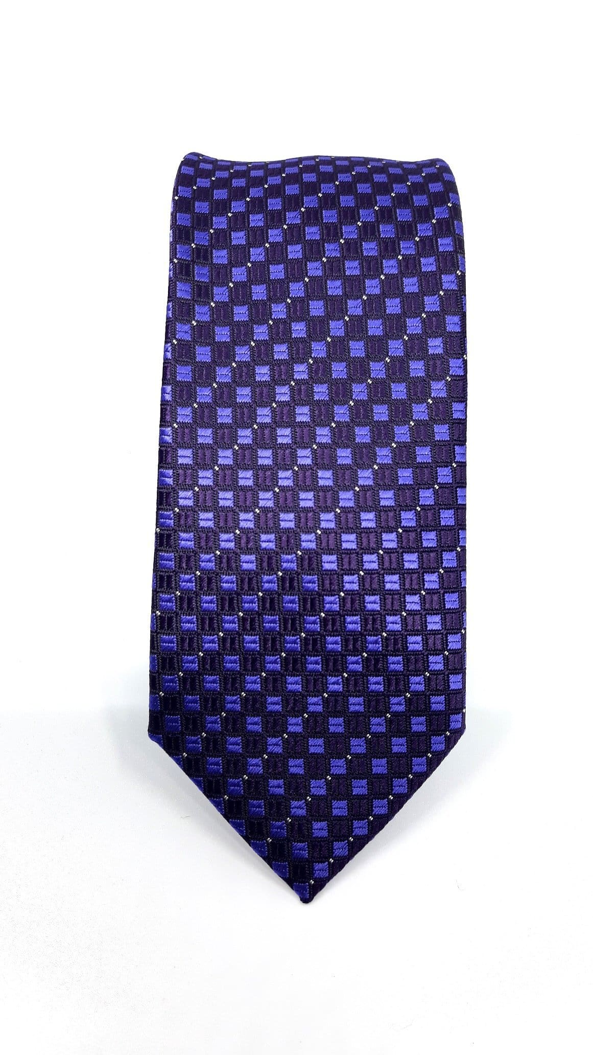 Elegancki krawat męski firmy Piotr o klasycznym i modnym kroju, fioletowo śliwkowy w szachownicę.Krawat o klasycznym i modnym kroju, wykonany ze sztucznego jedwabiu. Jest on bardzo ważnym elementem ubioru, dzięki któremu każdy mężczyzna może wnieść do swojego stroju odrobinę koloru. Kompletując garderobę należy pamiętać, aby krawat tworzył spójny zestaw z marynarką lub koszulą. Jego unikatowy wzór z pewnością spełni swoją funkcję w połączeniu z różnymi tkaninami w kilku wariantach kolorystycznych. Ponadto wyraźne i mocne akcenty zdobnicze dodadzą charakteru i pozwolą wyróżnić się stylem. Krawat można dobrać zarówno do karnacji, garnituru jak i temperamentu.