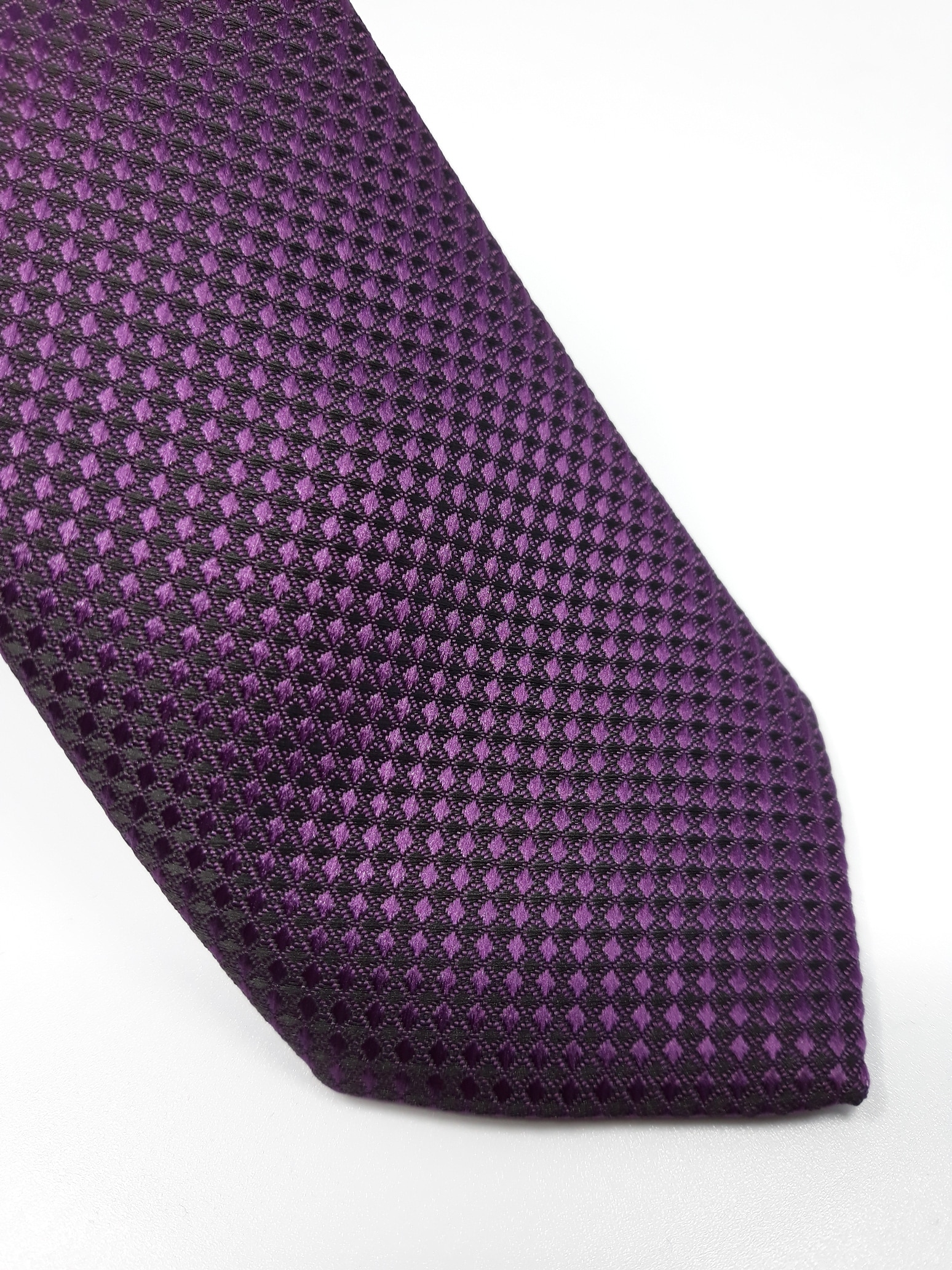 Elegancki krawat męski firmy Piotr o klasycznym i modnym kroju, fioletowym z czarne kropki. Krawat o klasycznym i modnym kroju, wykonany ze sztucznego jedwabiu. Jest on bardzo ważnym elementem ubioru, dzięki któremu każdy mężczyzna może wnieść do swojego stroju odrobinę koloru. Kompletując garderobę należy pamiętać, aby krawat tworzył spójny zestaw z marynarką lub koszulą. Jego unikatowy wzór z pewnością spełni swoją funkcję w połączeniu z różnymi tkaninami w kilku wariantach kolorystycznych. Ponadto wyraźne i mocne akcenty zdobnicze dodadzą charakteru i pozwolą wyróżnić się stylem. Krawat można dobrać zarówno do karnacji, garnituru jak i temperamentu.