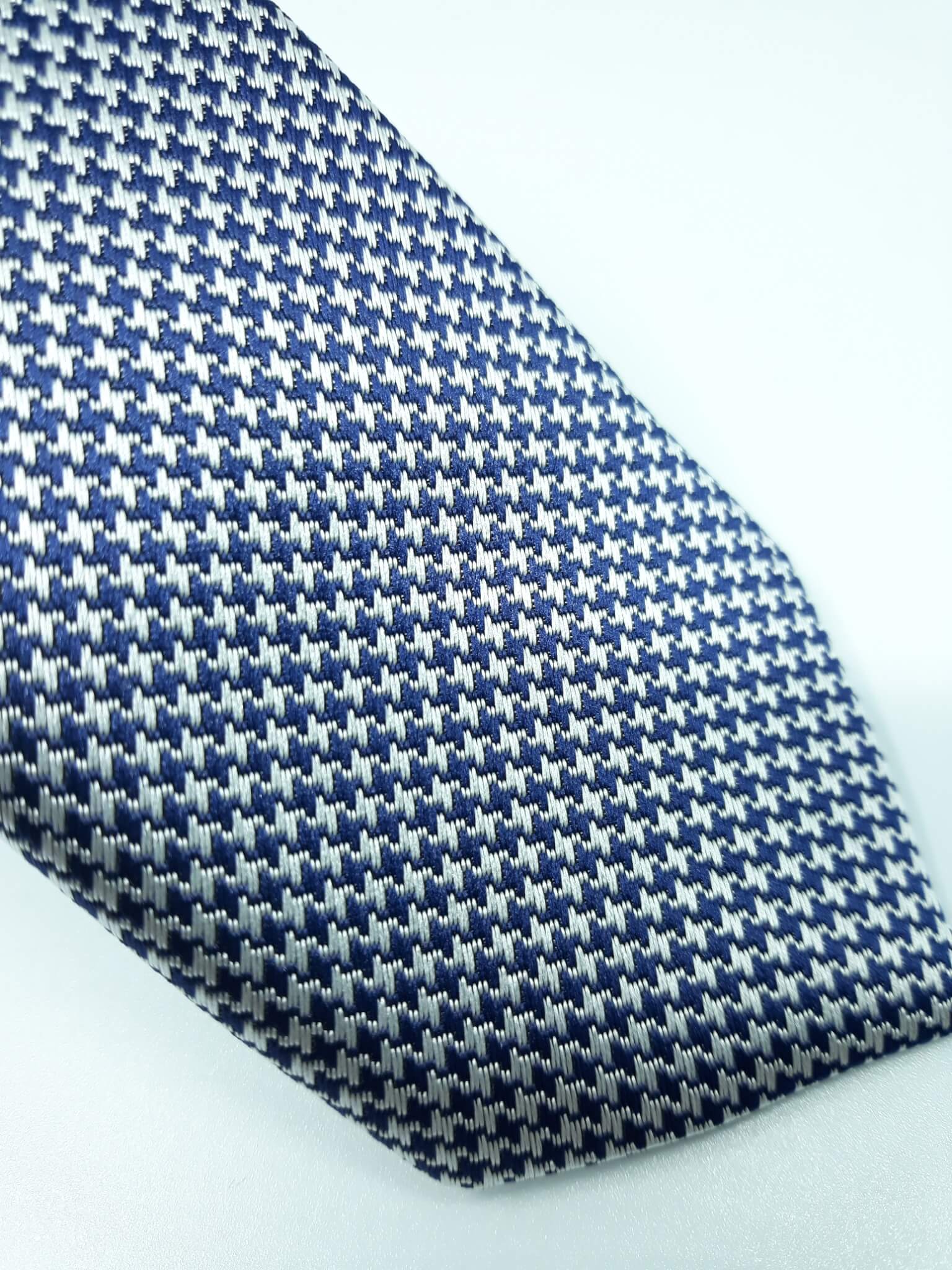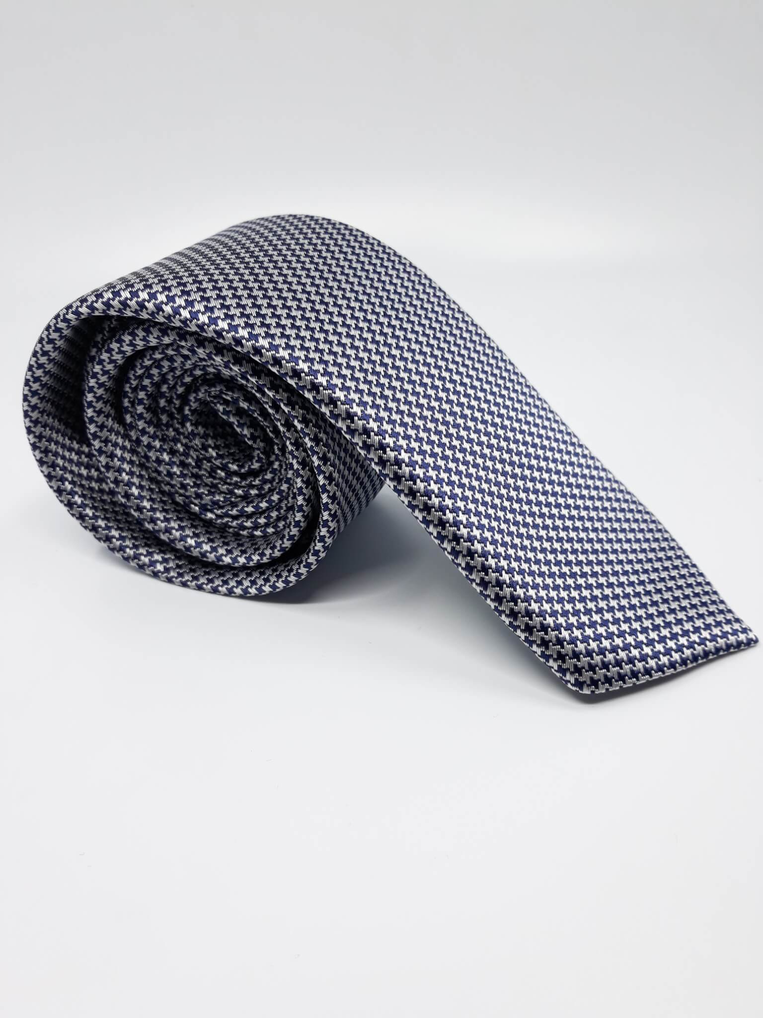 Elegancki krawat męski firmy Piotr o klasycznym i modnym kroju granatowo biały. Krawat o klasycznym i modnym kroju, wykonany ze sztucznego jedwabiu. Jest on bardzo ważnym elementem ubioru, dzięki któremu każdy mężczyzna może wnieść do swojego stroju odrobinę koloru. Kompletując garderobę należy pamiętać, aby krawat tworzył spójny zestaw z marynarką lub koszulą. Jego unikatowy wzór z pewnością spełni swoją funkcję w połączeniu z różnymi tkaninami w kilku wariantach kolorystycznych. Ponadto wyraźne i mocne akcenty zdobnicze dodadzą charakteru i pozwolą wyróżnić się stylem. Krawat można dobrać zarówno do karnacji, garnituru jak i temperamentu.
