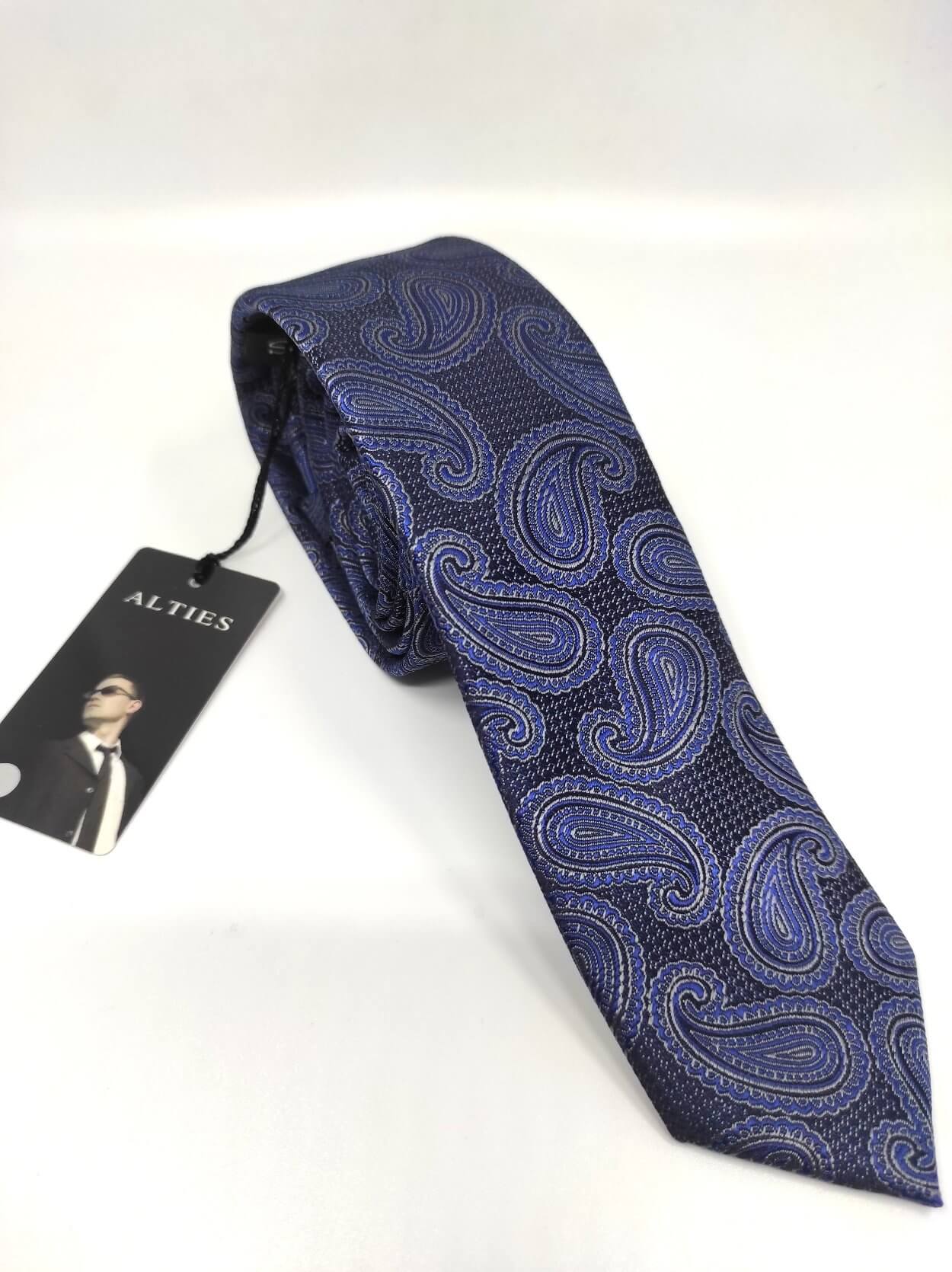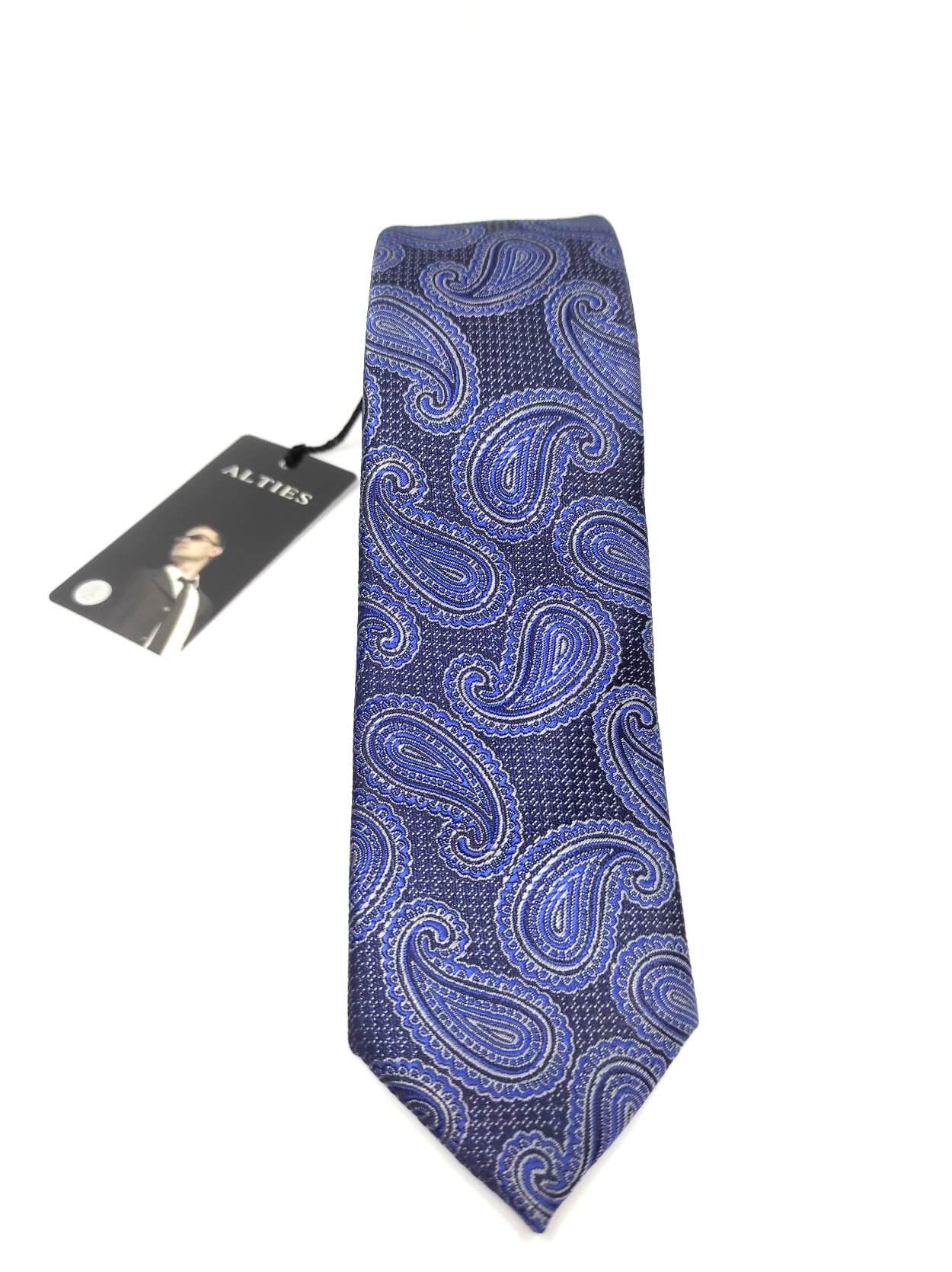 Elegancki krawat męski firmy Alties o klasycznym i modnym kroju,granatowo niebieski wzór. Krawat o klasycznym i modnym kroju, wykonany z microfibry. Jest on bardzo ważnym elementem ubioru, dzięki któremu każdy mężczyzna może wnieść do swojego stroju odrobinę koloru. Kompletując garderobę należy pamiętać, aby krawat tworzył spójny zestaw z marynarką lub koszulą. Jego unikatowy wzór z pewnością spełni swoją funkcję w połączeniu z różnymi tkaninami w kilku wariantach kolorystycznych. Ponadto wyraźne i mocne akcenty zdobnicze dodadzą charakteru i pozwolą wyróżnić się stylem. Krawat można dobrać zarówno do karnacji, garnituru jak i temperamentu.