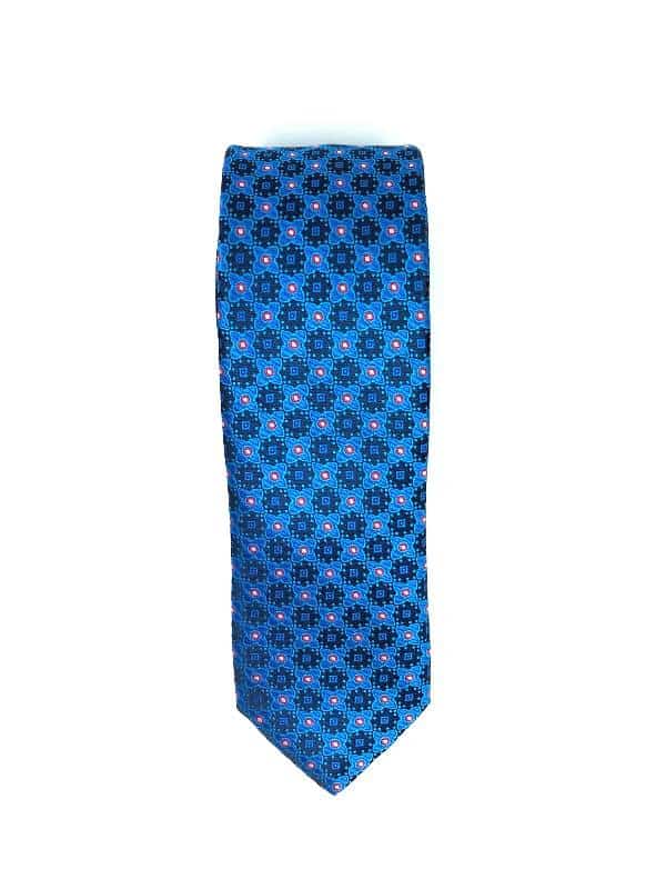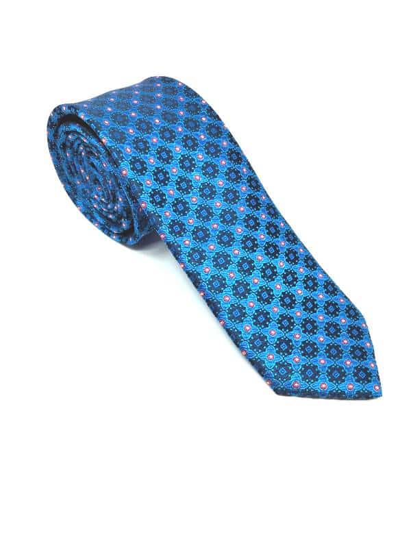 Elegancki krawat męski firmy Piotr o klasycznym i modnym kroju, granatowo niebieski w kwiatki. Wykonany ze sztucznego jedwabiu. Jest on bardzo ważnym elementem ubioru, dzięki któremu każdy mężczyzna może wnieść do swojego stroju odrobinę koloru. Kompletując garderobę należy pamiętać, aby krawat tworzył spójny zestaw z marynarką lub koszulą. Jego unikatowy wzór z pewnością spełni swoją funkcję w połączeniu z różnymi tkaninami w kilku wariantach kolorystycznych. Ponadto wyraźne i mocne akcenty zdobnicze dodadzą charakteru i pozwolą wyróżnić się stylem. Krawat można dobrać zarówno do karnacji, garnituru jak i temperamentu.