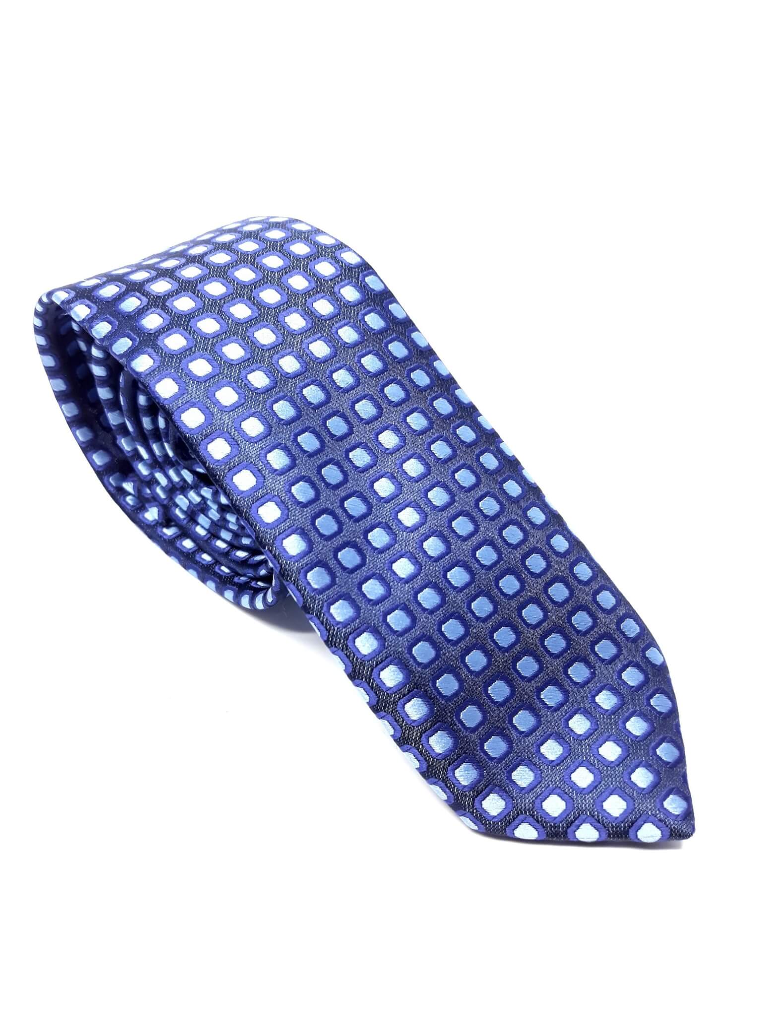 Elegancki krawat męski firmy Piotr o klasycznym i modnym kroju, granatowo niebieski w kwadraty. Krawat o klasycznym i modnym kroju, wykonany ze sztucznego jedwabiu. Jest on bardzo ważnym elementem ubioru, dzięki któremu każdy mężczyzna może wnieść do swojego stroju odrobinę koloru. Kompletując garderobę należy pamiętać, aby krawat tworzył spójny zestaw z marynarką lub koszulą. Jego unikatowy wzór z pewnością spełni swoją funkcję w połączeniu z różnymi tkaninami w kilku wariantach kolorystycznych. Ponadto wyraźne i mocne akcenty zdobnicze dodadzą charakteru i pozwolą wyróżnić się stylem. Krawat można dobrać zarówno do karnacji, garnituru jak i temperamentu.