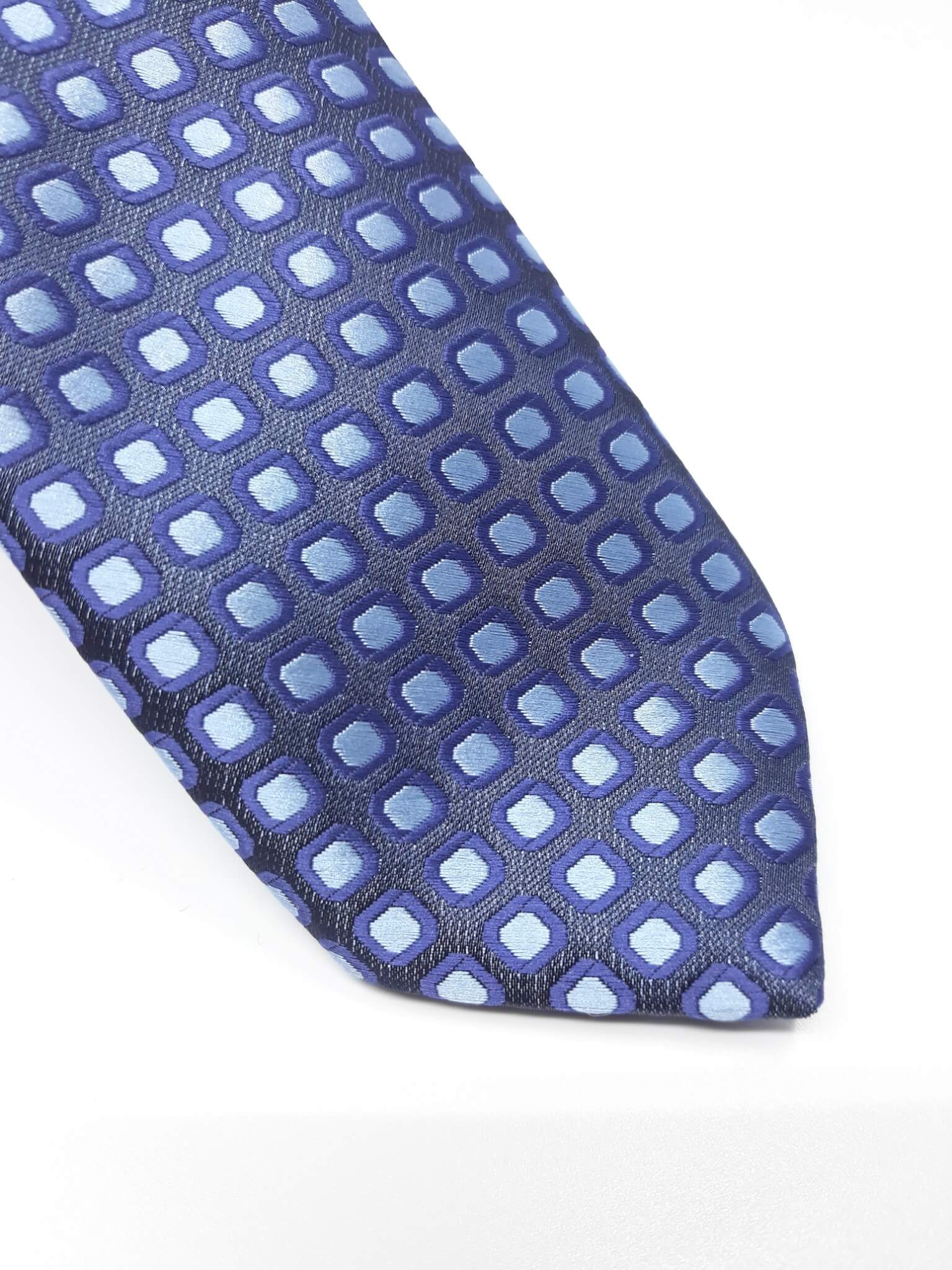 Elegancki Krawat Granatowo Niebieski w Kwadraty