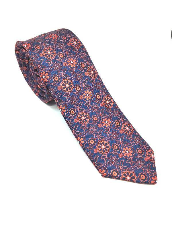 Elegancki krawat męski firmy Piotr o klasycznym i modnym kroju w kolorze granatowo pomarańczowym.Krawat o klasycznym i modnym kroju, wykonany ze sztucznego jedwabiu. Jest on bardzo ważnym elementem ubioru, dzięki któremu każdy mężczyzna może wnieść do swojego stroju odrobinę koloru. Kompletując garderobę należy pamiętać, aby krawat tworzył spójny zestaw z marynarką lub koszulą. Jego unikatowy wzór z pewnością spełni swoją funkcję w połączeniu z różnymi tkaninami w kilku wariantach kolorystycznych. Ponadto wyraźne i mocne akcenty zdobnicze dodadzą charakteru i pozwolą wyróżnić się stylem. Krawat można dobrać zarówno do karnacji, garnituru jak i temperamentu.