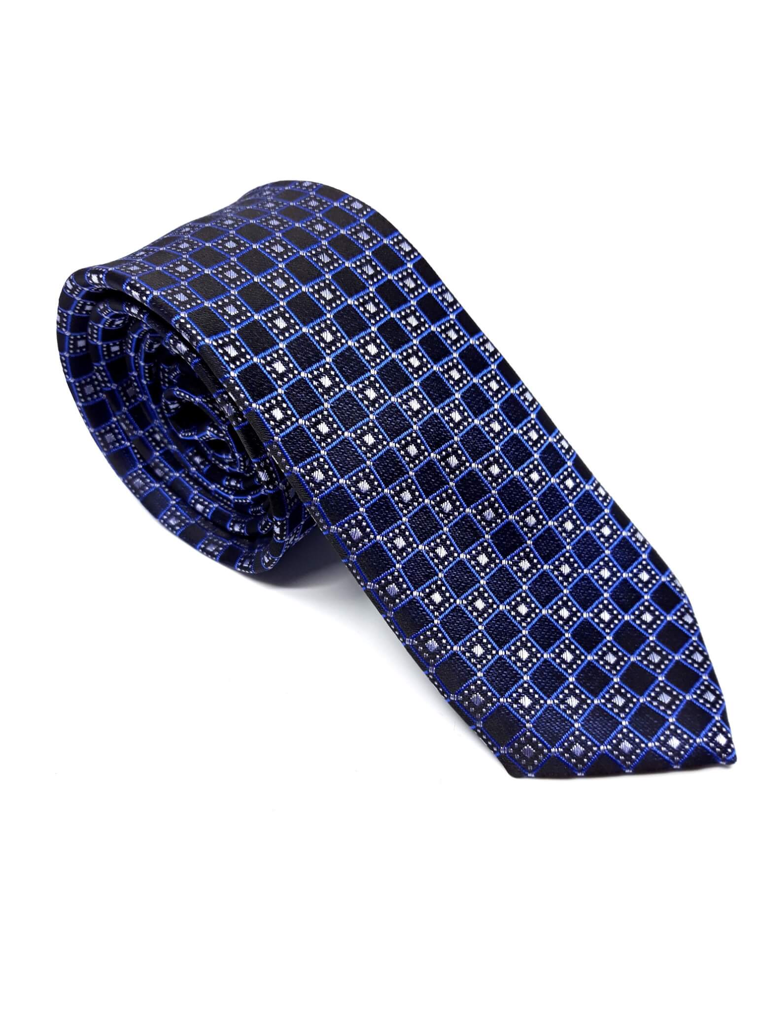 Elegancki krawat męski firmy Piotr o klasycznym i modnym kroju, granatowo szafirowy we wzór. Krawat o klasycznym i modnym kroju, wykonany ze sztucznego jedwabiu. Jest on bardzo ważnym elementem ubioru, dzięki któremu każdy mężczyzna może wnieść do swojego stroju odrobinę koloru. Kompletując garderobę należy pamiętać, aby krawat tworzył spójny zestaw z marynarką lub koszulą. Jego unikatowy wzór z pewnością spełni swoją funkcję w połączeniu z różnymi tkaninami w kilku wariantach kolorystycznych. Ponadto wyraźne i mocne akcenty zdobnicze dodadzą charakteru i pozwolą wyróżnić się stylem. Krawat można dobrać zarówno do karnacji, garnituru jak i temperamentu.