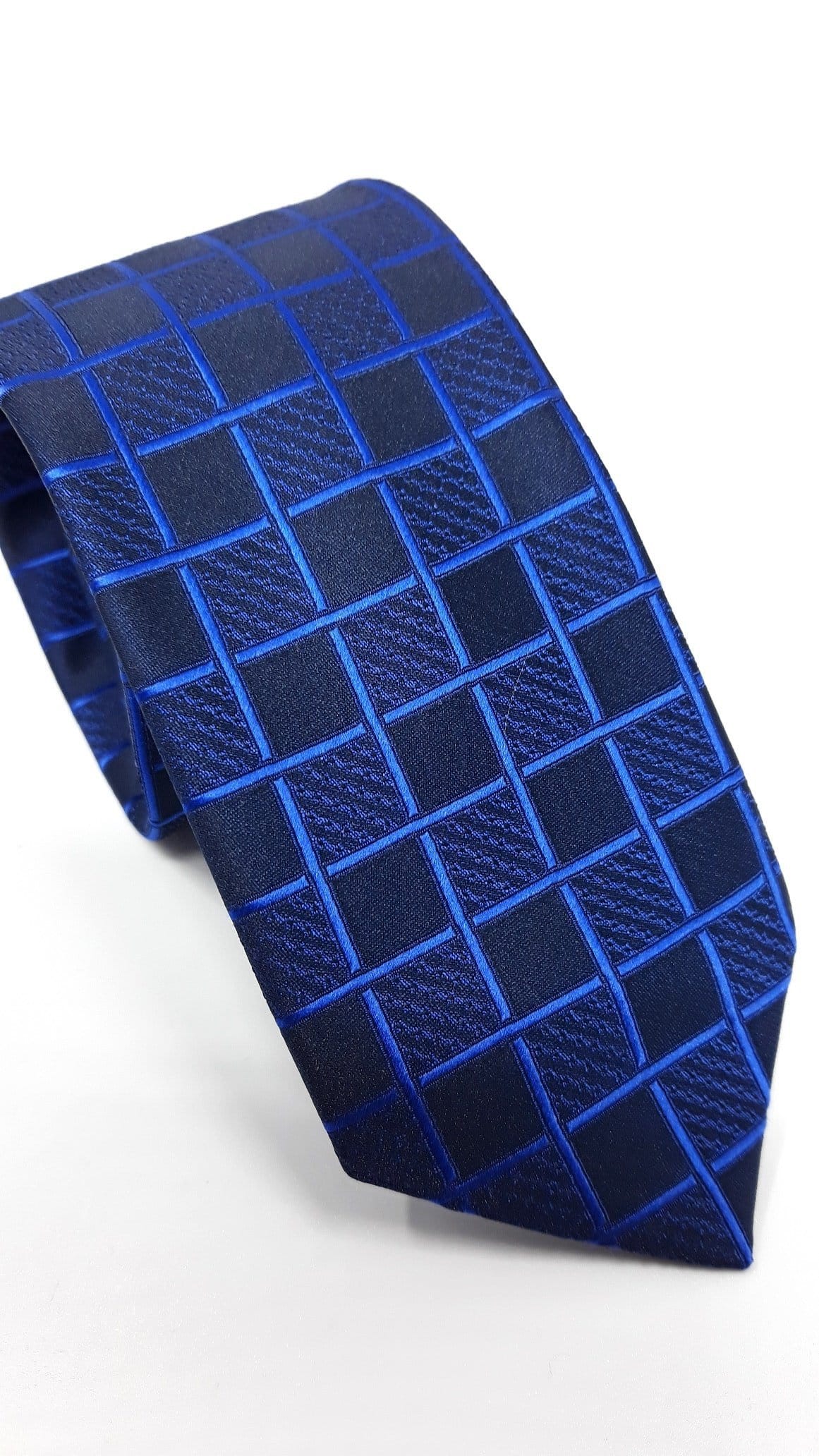 Elegancki krawat męski firmy Piotr o klasycznym i modnym kroju, granatowo szafirowy w kratkę.Krawat o klasycznym i modnym kroju, wykonany ze sztucznego jedwabiu. Jest on bardzo ważnym elementem ubioru, dzięki któremu każdy mężczyzna może wnieść do swojego stroju odrobinę koloru. Kompletując garderobę należy pamiętać, aby krawat tworzył spójny zestaw z marynarką lub koszulą. Jego unikatowy wzór z pewnością spełni swoją funkcję w połączeniu z różnymi tkaninami w kilku wariantach kolorystycznych. Ponadto wyraźne i mocne akcenty zdobnicze dodadzą charakteru i pozwolą wyróżnić się stylem. Krawat można dobrać zarówno do karnacji, garnituru jak i temperamentu.