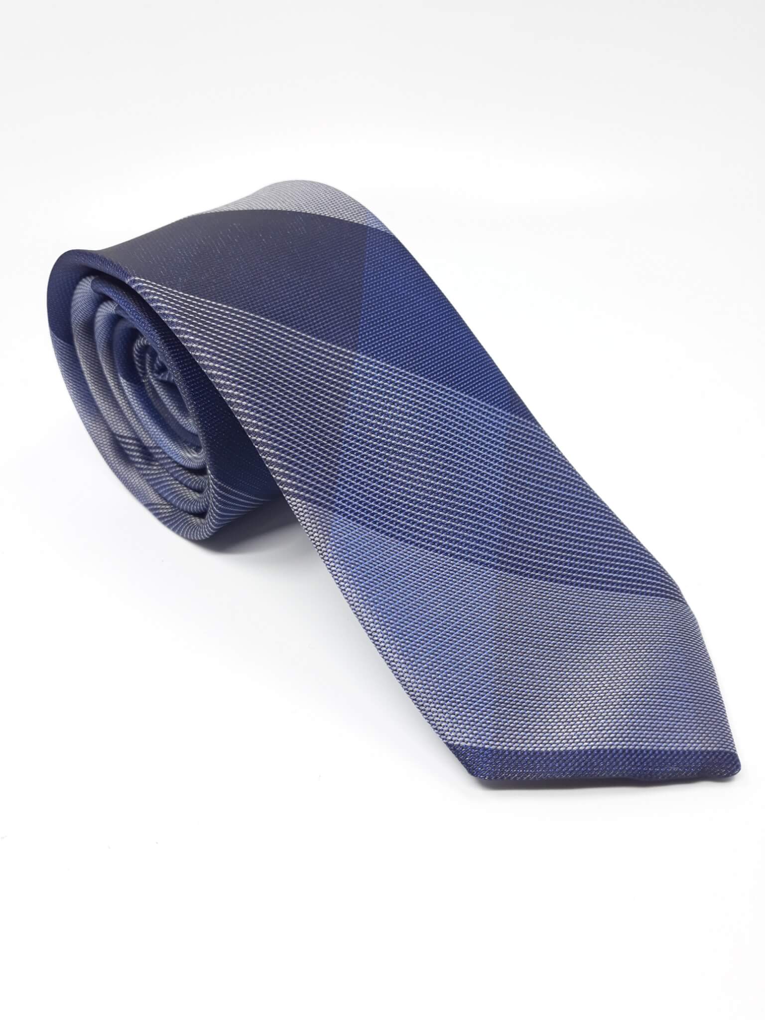 Elegancki krawat męski firmy Piotr o klasycznym i modnym kroju, granatowy w kratę z efektem 3d. Krawat o klasycznym i modnym kroju, wykonany ze sztucznego jedwabiu. Jest on bardzo ważnym elementem ubioru, dzięki któremu każdy mężczyzna może wnieść do swojego stroju odrobinę koloru. Kompletując garderobę należy pamiętać, aby krawat tworzył spójny zestaw z marynarką lub koszulą. Jego unikatowy wzór z pewnością spełni swoją funkcję w połączeniu z różnymi tkaninami w kilku wariantach kolorystycznych. Ponadto wyraźne i mocne akcenty zdobnicze dodadzą charakteru i pozwolą wyróżnić się stylem. Krawat można dobrać zarówno do karnacji, garnituru jak i temperamentu.