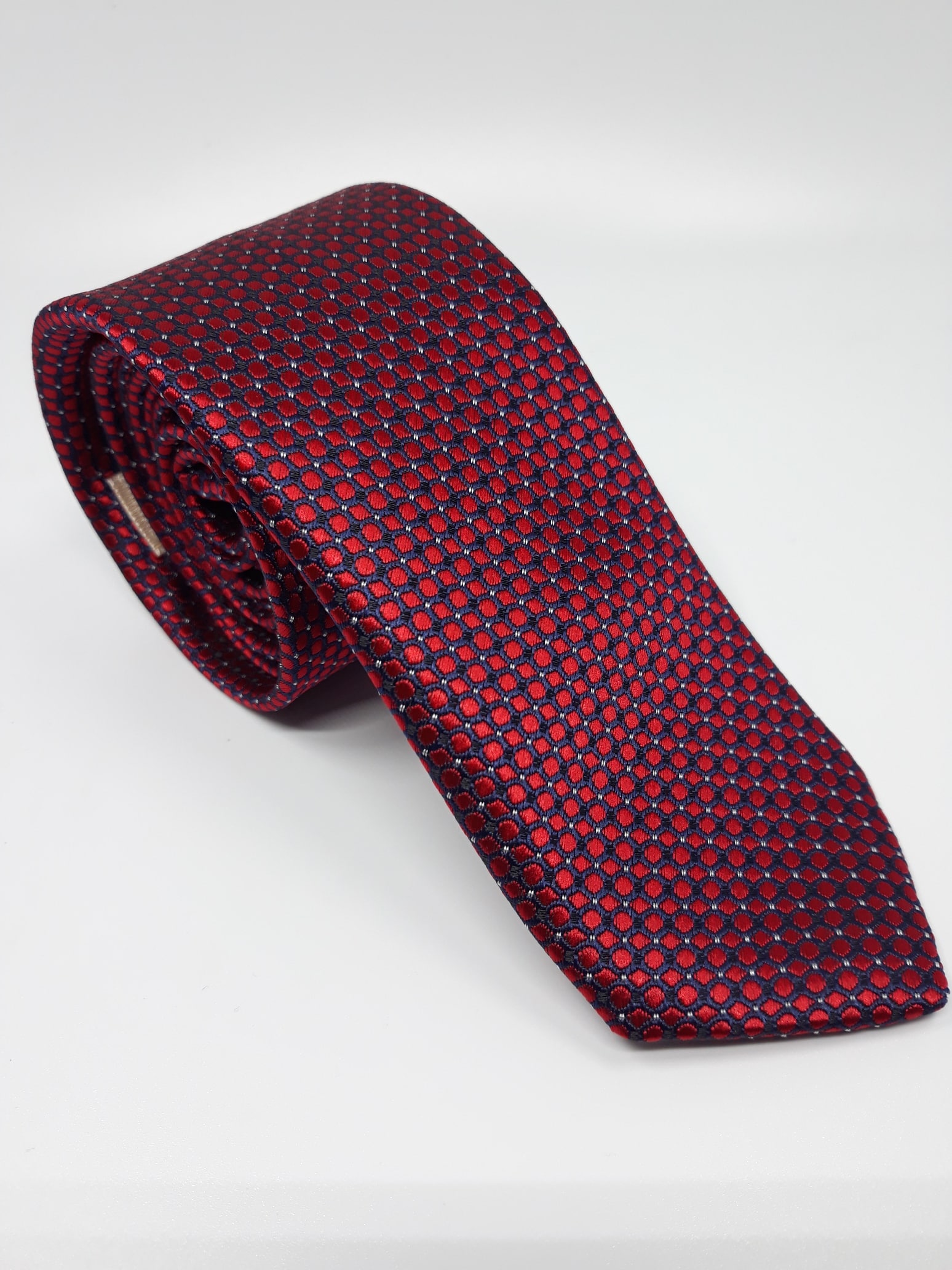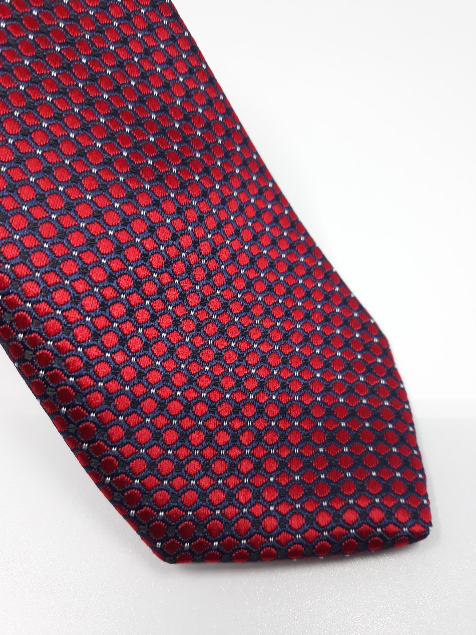 Elegancki krawat męski firmy Piotr o klasycznym i modnym kroju, granatowy w bordowe romby. Krawat o klasycznym i modnym kroju, wykonany ze sztucznego jedwabiu. Jest on bardzo ważnym elementem ubioru, dzięki któremu każdy mężczyzna może wnieść do swojego stroju odrobinę koloru. Kompletując garderobę należy pamiętać, aby krawat tworzył spójny zestaw z marynarką lub koszulą. Jego unikatowy wzór z pewnością spełni swoją funkcję w połączeniu z różnymi tkaninami w kilku wariantach kolorystycznych. Ponadto wyraźne i mocne akcenty zdobnicze dodadzą charakteru i pozwolą wyróżnić się stylem. Krawat można dobrać zarówno do karnacji, garnituru jak i temperamentu.