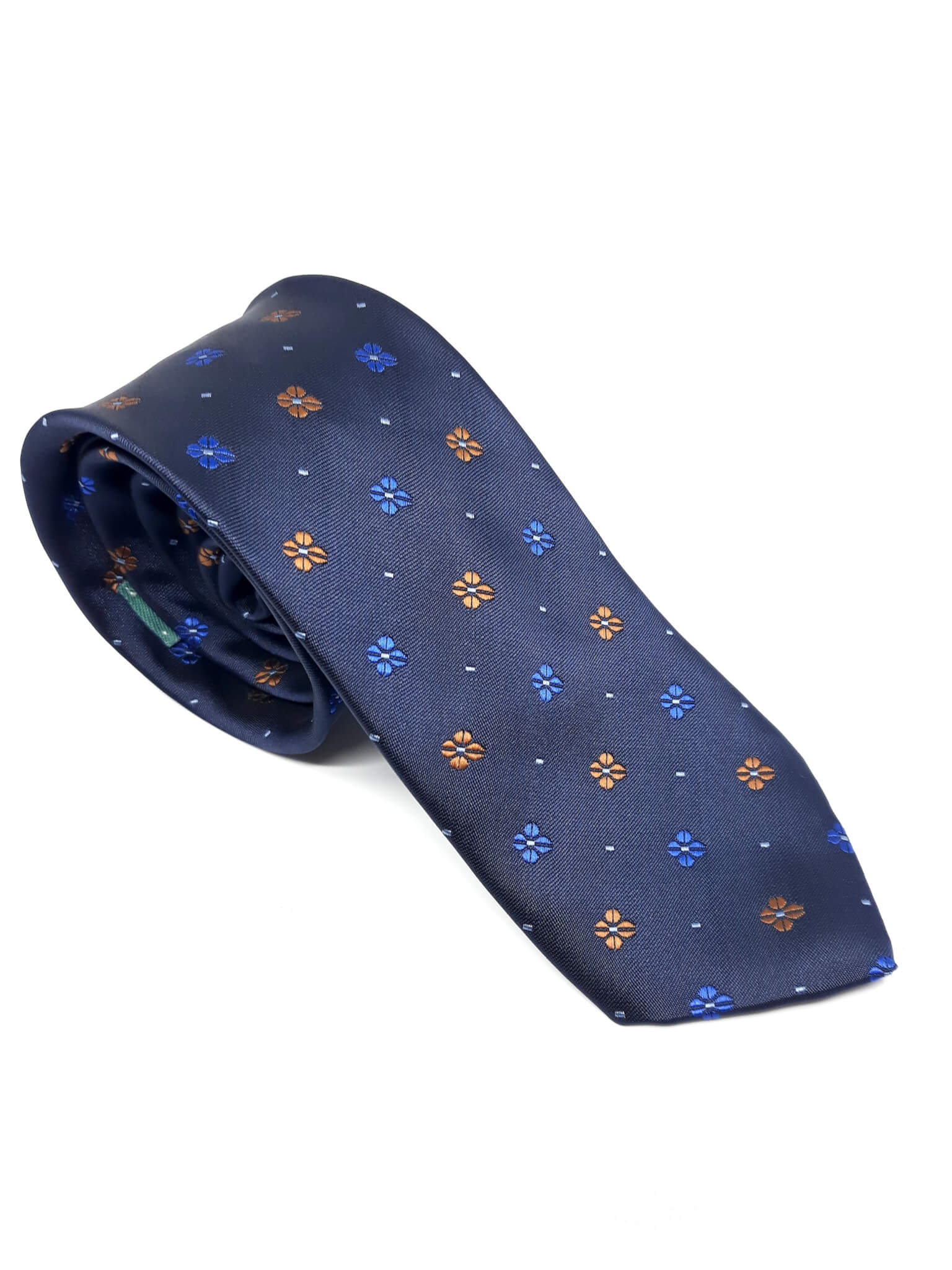 Elegancki Krawat Granatowy Brązowe Kwiatki