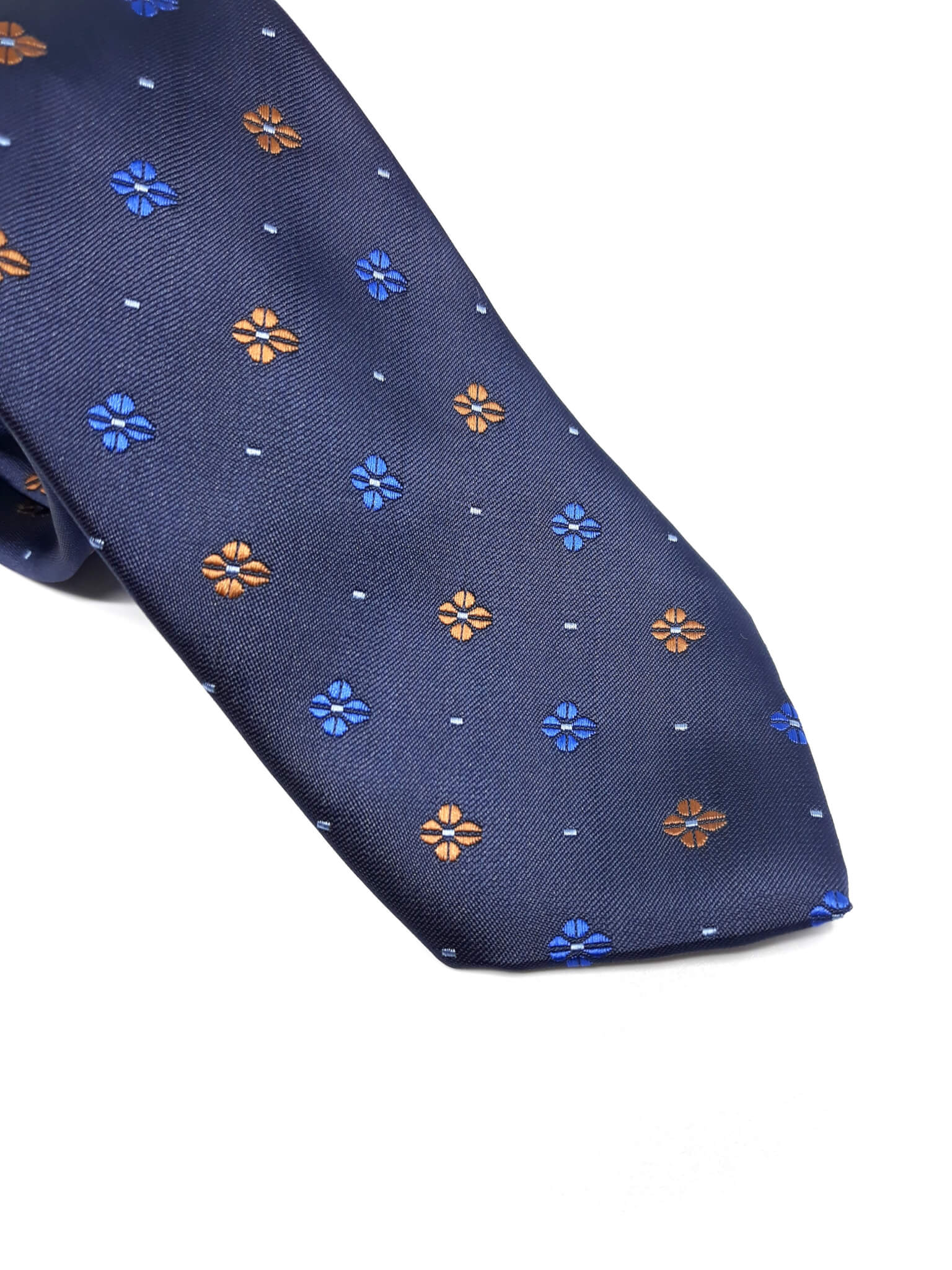 Elegancki krawat męski firmy Piotr o klasycznym i modnym kroju, granatowy w brązowe i szafirowe kwiatki.Krawat o klasycznym i modnym kroju, wykonany ze sztucznego jedwabiu. Jest on bardzo ważnym elementem ubioru, dzięki któremu każdy mężczyzna może wnieść do swojego stroju odrobinę koloru. Kompletując garderobę należy pamiętać, aby krawat tworzył spójny zestaw z marynarką lub koszulą. Jego unikatowy wzór z pewnością spełni swoją funkcję w połączeniu z różnymi tkaninami w kilku wariantach kolorystycznych. Ponadto wyraźne i mocne akcenty zdobnicze dodadzą charakteru i pozwolą wyróżnić się stylem. Krawat można dobrać zarówno do karnacji, garnituru jak i temperamentu.