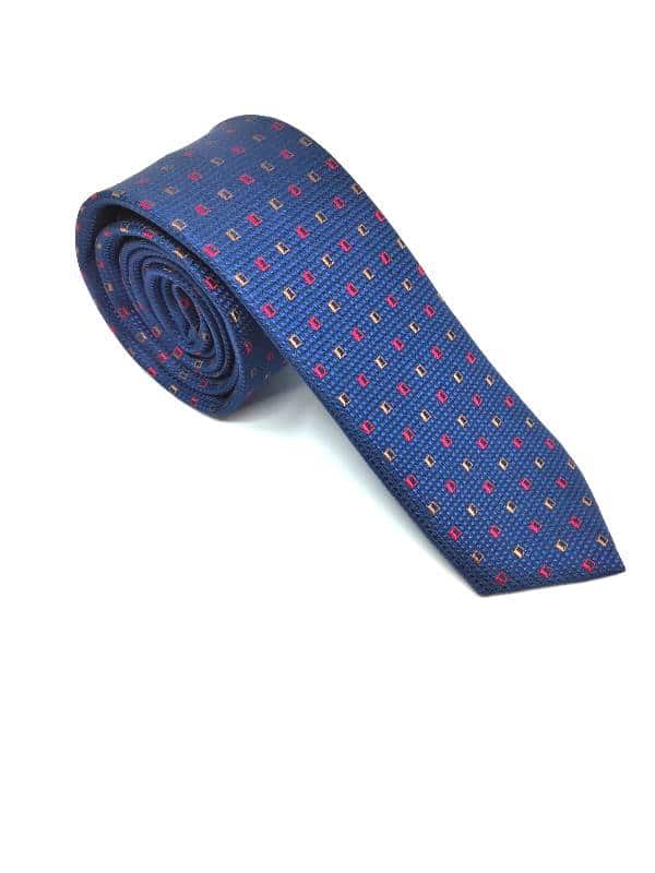 Elegancki krawat męski firmy Piotr o klasycznym i modnym kroju, granatowy w czerwono brązowy wzór. Wykonany ze sztucznego jedwabiu. Jest on bardzo ważnym elementem ubioru, dzięki któremu każdy mężczyzna może wnieść do swojego stroju odrobinę koloru. Kompletując garderobę należy pamiętać, aby krawat tworzył spójny zestaw z marynarką lub koszulą. Jego unikatowy wzór z pewnością spełni swoją funkcję w połączeniu z różnymi tkaninami w kilku wariantach kolorystycznych. Ponadto wyraźne i mocne akcenty zdobnicze dodadzą charakteru i pozwolą wyróżnić się stylem. Krawat można dobrać zarówno do karnacji, garnituru jak i temperamentu.