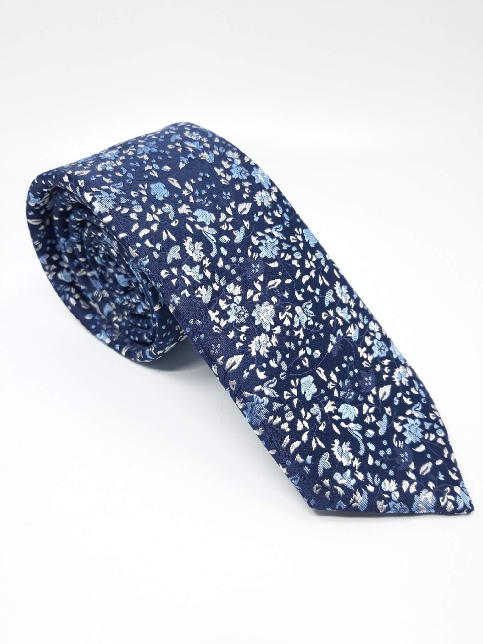 Elegancki Krawat Granatowy Drobny Kwiatowy Wzór
