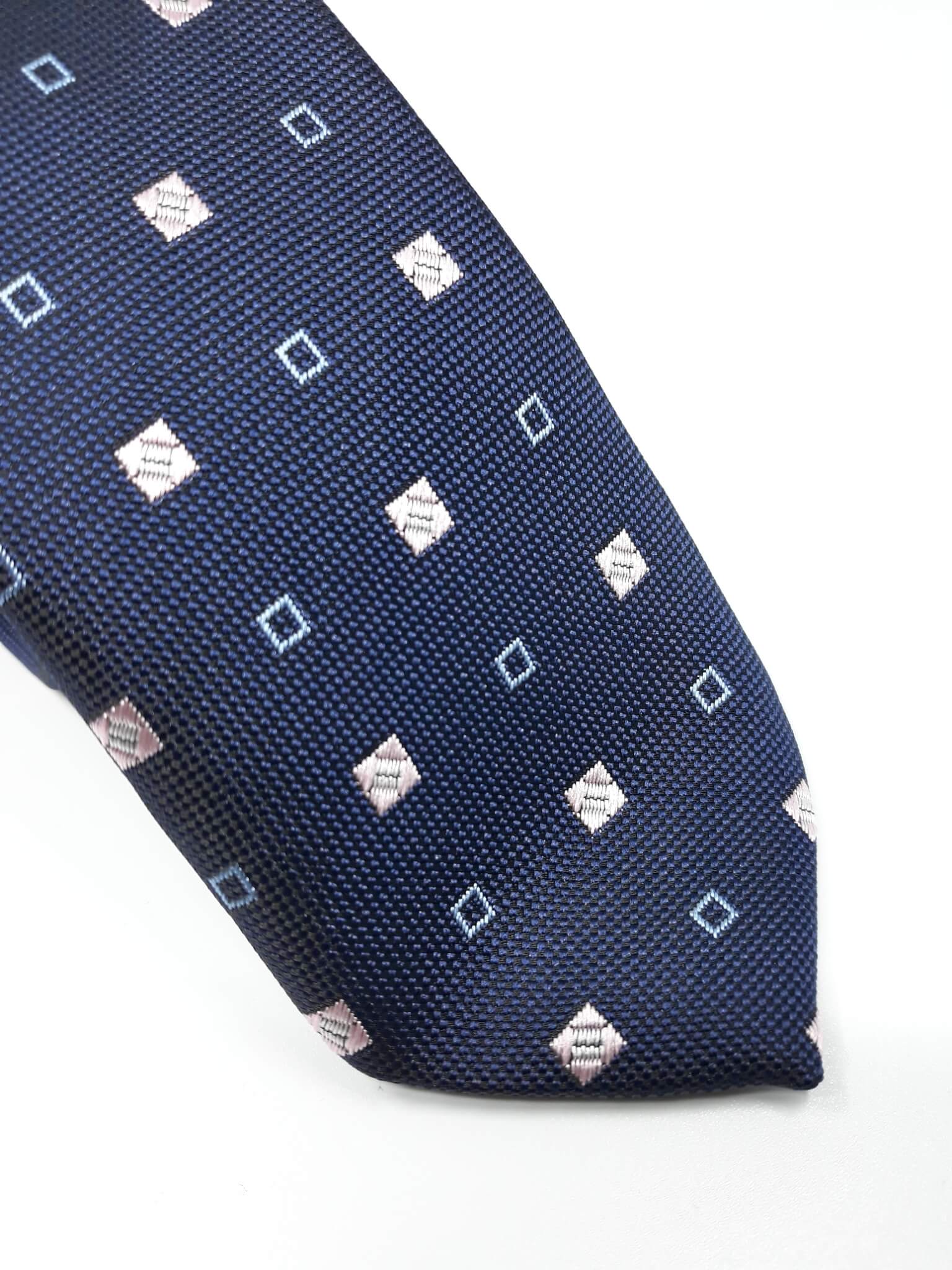 Elegancki krawat męski firmy Piotr o klasycznym i modnym kroju w kolorze granatowym w różowe i niebieskie kwadraciki. Krawat o klasycznym i modnym kroju, wykonany ze sztucznego jedwabiu. Jest on bardzo ważnym elementem ubioru, dzięki któremu każdy mężczyzna może wnieść do swojego stroju odrobinę koloru. Kompletując garderobę należy pamiętać, aby krawat tworzył spójny zestaw z marynarką lub koszulą. Jego unikatowy wzór z pewnością spełni swoją funkcję w połączeniu z różnymi tkaninami w kilku wariantach kolorystycznych. Ponadto wyraźne i mocne akcenty zdobnicze dodadzą charakteru i pozwolą wyróżnić się stylem. Krawat można dobrać zarówno do karnacji, garnituru jak i temperamentu.