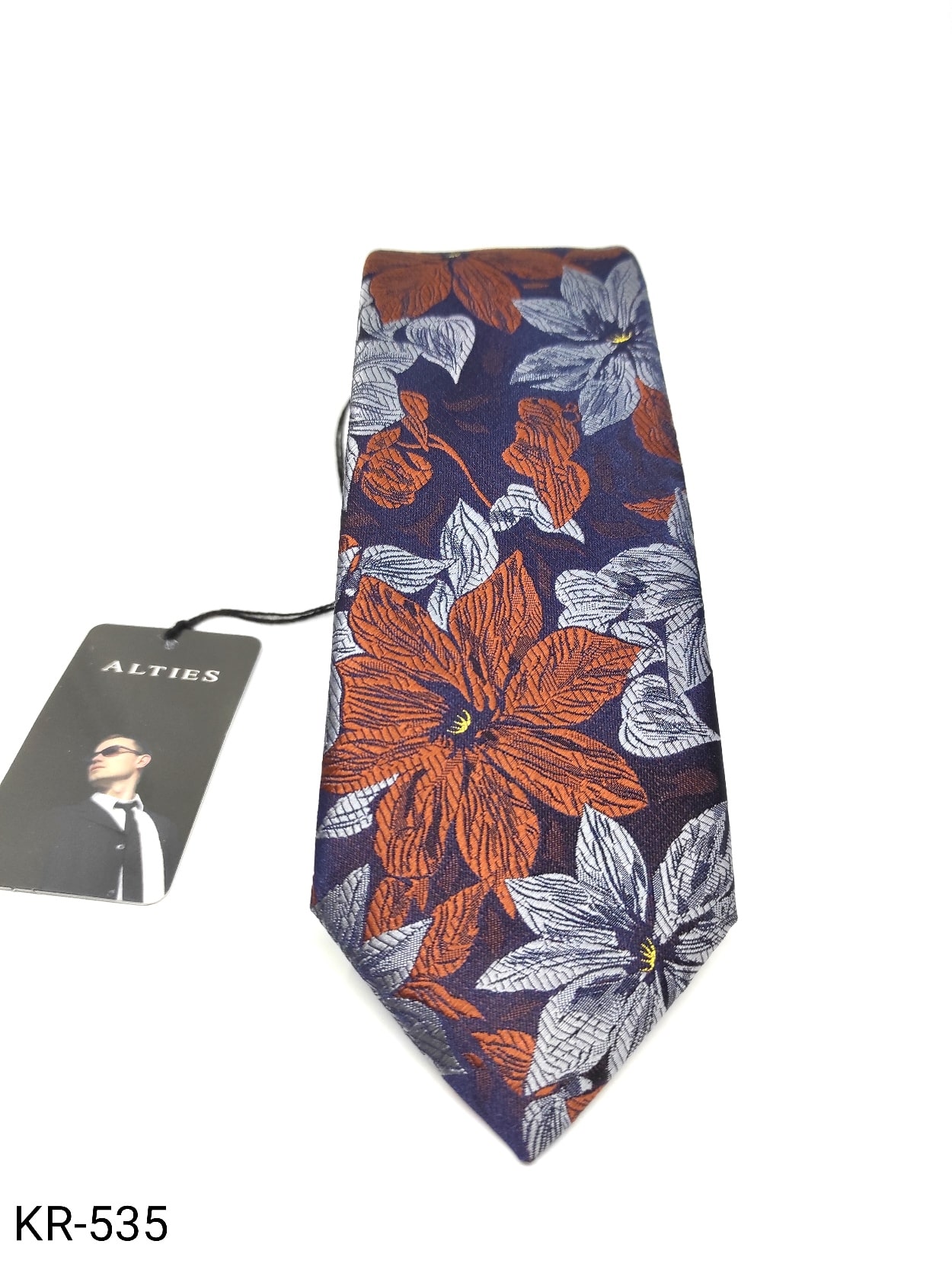 Elegancki krawat męski firmy Alties o klasycznym i modnym kroju,granatowy kwiaty. Krawat o klasycznym i modnym kroju, wykonany z microfibry. Jest on bardzo ważnym elementem ubioru, dzięki któremu każdy mężczyzna może wnieść do swojego stroju odrobinę koloru. Kompletując garderobę należy pamiętać, aby krawat tworzył spójny zestaw z marynarką lub koszulą. Jego unikatowy wzór z pewnością spełni swoją funkcję w połączeniu z różnymi tkaninami w kilku wariantach kolorystycznych. Ponadto wyraźne i mocne akcenty zdobnicze dodadzą charakteru i pozwolą wyróżnić się stylem. Krawat można dobrać zarówno do karnacji, garnituru jak i temperamentu.