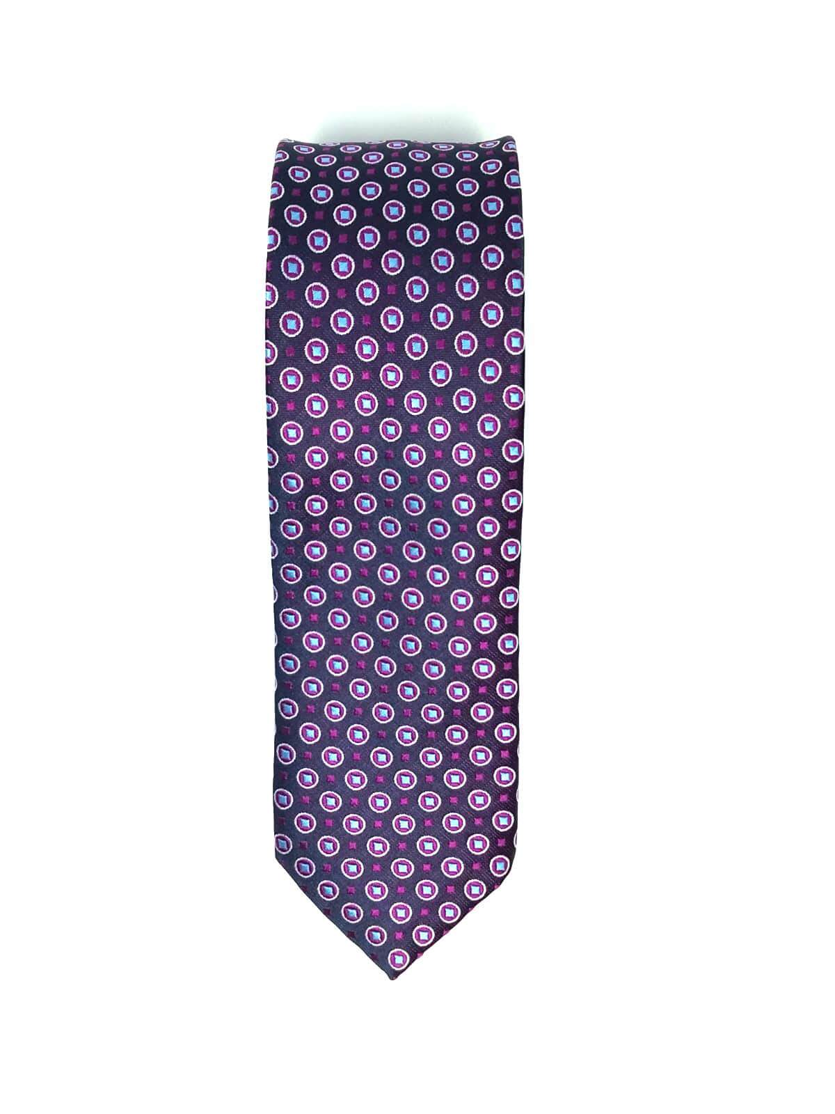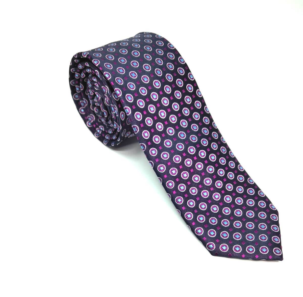 Elegancki krawat męski firmy Piotr o klasycznym i modnym kroju, granatowy w różowy wzorek. Wykonany ze sztucznego jedwabiu. Jest on bardzo ważnym elementem ubioru, dzięki któremu każdy mężczyzna może wnieść do swojego stroju odrobinę koloru. Kompletując garderobę należy pamiętać, aby krawat tworzył spójny zestaw z marynarką lub koszulą. Jego unikatowy wzór z pewnością spełni swoją funkcję w połączeniu z różnymi tkaninami w kilku wariantach kolorystycznych. Ponadto wyraźne i mocne akcenty zdobnicze dodadzą charakteru i pozwolą wyróżnić się stylem. Krawat można dobrać zarówno do karnacji, garnituru jak i temperamentu.