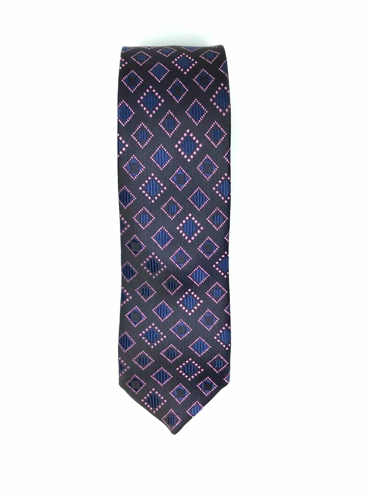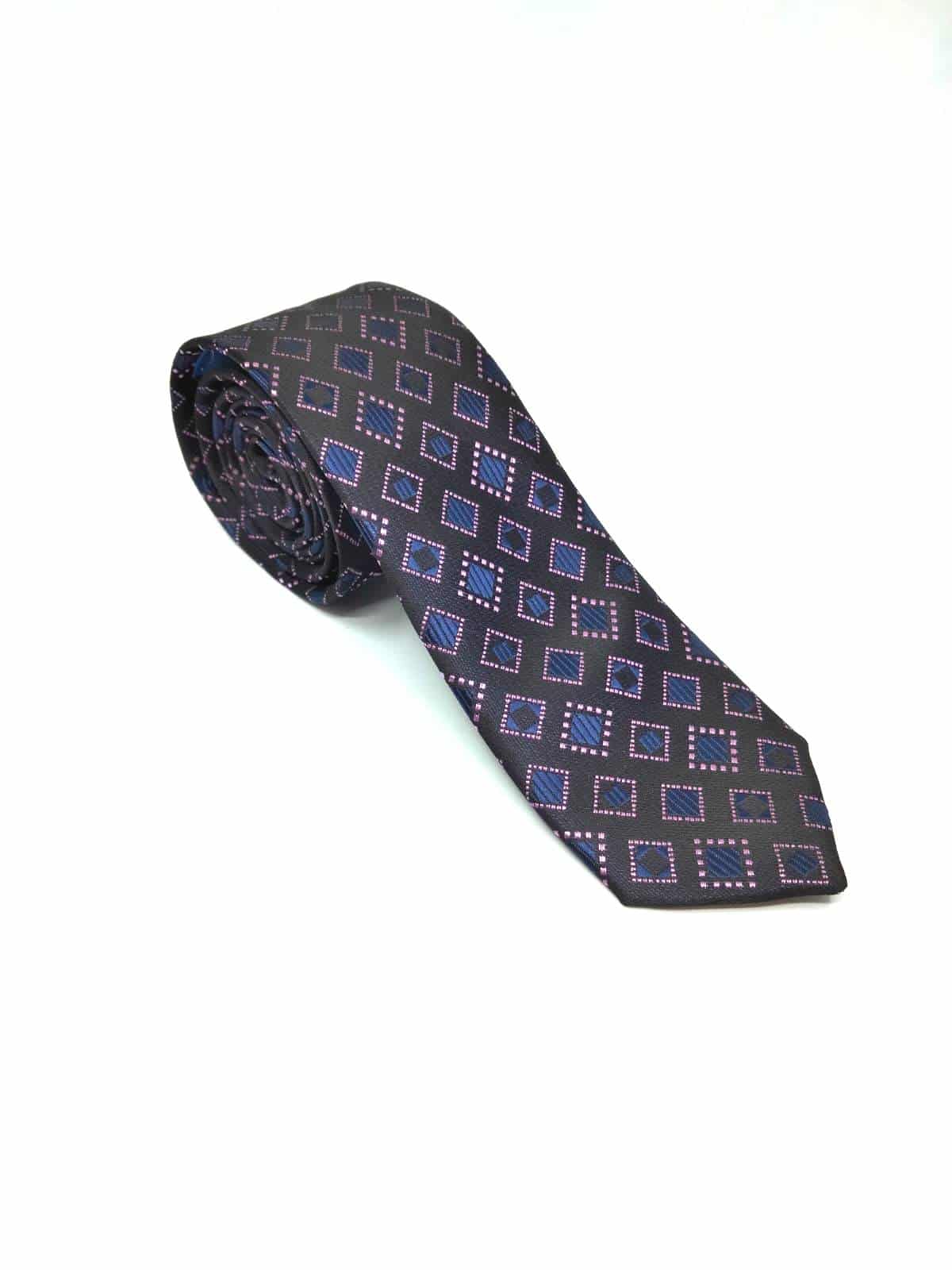Elegancki krawat męski firmy Piotr o klasycznym i modnym kroju, granatowy w trójkąciki. Wykonany ze sztucznego jedwabiu. Jest on bardzo ważnym elementem ubioru, dzięki któremu każdy mężczyzna może wnieść do swojego stroju odrobinę koloru. Kompletując garderobę należy pamiętać, aby krawat tworzył spójny zestaw z marynarką lub koszulą. Jego unikatowy wzór z pewnością spełni swoją funkcję w połączeniu z różnymi tkaninami w kilku wariantach kolorystycznych. Ponadto wyraźne i mocne akcenty zdobnicze dodadzą charakteru i pozwolą wyróżnić się stylem. Krawat można dobrać zarówno do karnacji, garnituru jak i temperamentu.