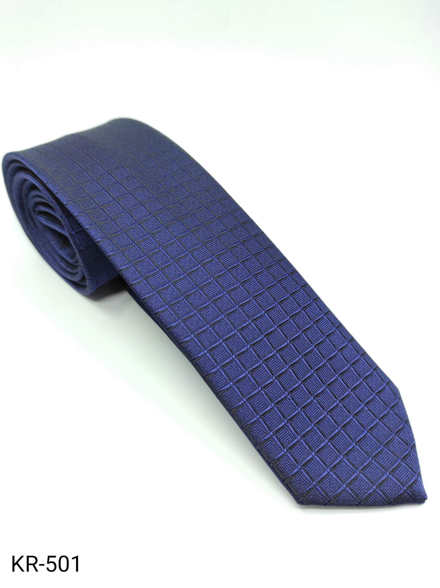 Elegancki krawat męski firmy Piotr o klasycznym i modnym kroju, granatowy w kratkę. Wykonany ze sztucznego jedwabiu. Jest on bardzo ważnym elementem ubioru, dzięki któremu każdy mężczyzna może wnieść do swojego stroju odrobinę koloru. Kompletując garderobę należy pamiętać, aby krawat tworzył spójny zestaw z marynarką lub koszulą. Jego unikatowy wzór z pewnością spełni swoją funkcję w połączeniu z różnymi tkaninami w kilku wariantach kolorystycznych. Ponadto wyraźne i mocne akcenty zdobnicze dodadzą charakteru i pozwolą wyróżnić się stylem. Krawat można dobrać zarówno do karnacji, garnituru jak i temperamentu.