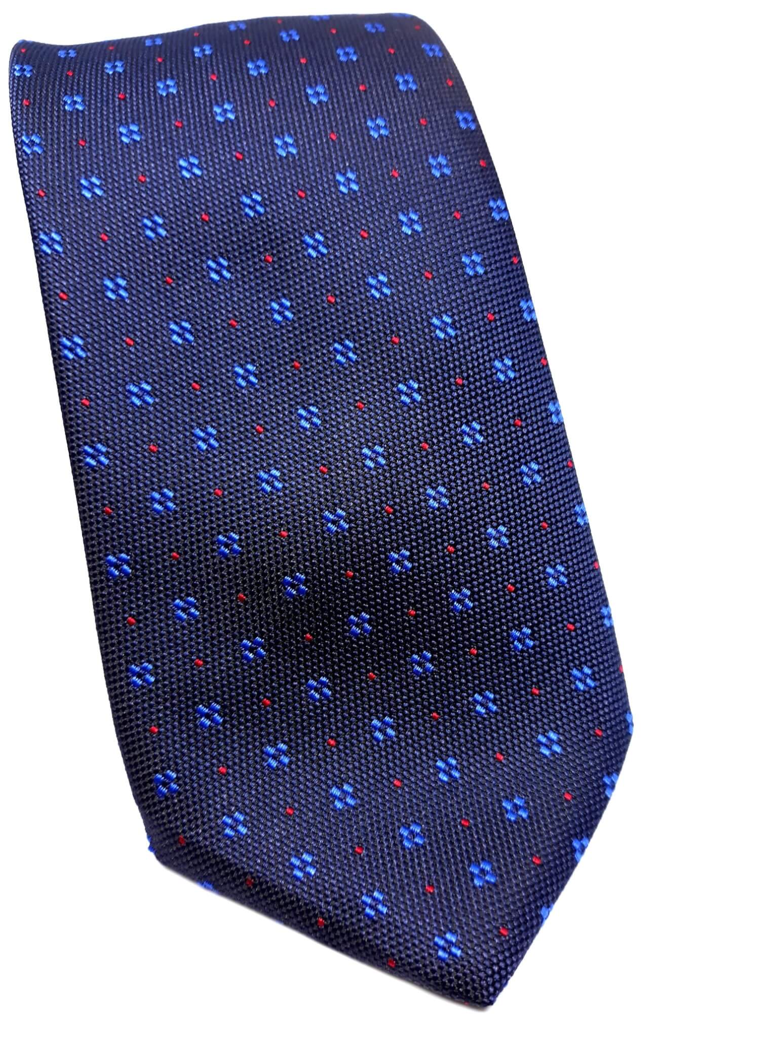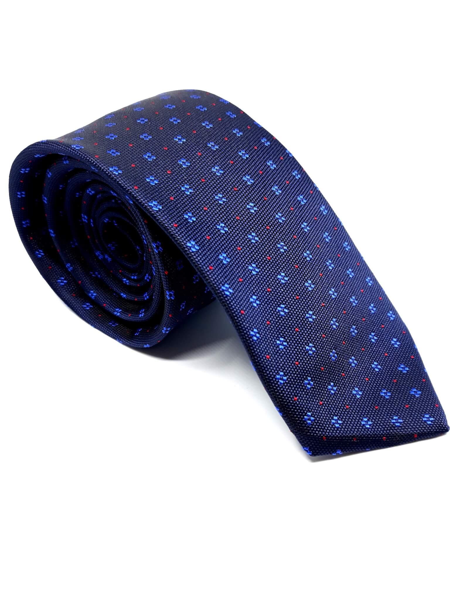 Elegancki krawat męski firmy Piotr o klasycznym i modnym kroju, granatowy w szafirowe kwiatuszki.Krawat o klasycznym i modnym kroju, wykonany ze sztucznego jedwabiu. Jest on bardzo ważnym elementem ubioru, dzięki któremu każdy mężczyzna może wnieść do swojego stroju odrobinę koloru. Kompletując garderobę należy pamiętać, aby krawat tworzył spójny zestaw z marynarką lub koszulą. Jego unikatowy wzór z pewnością spełni swoją funkcję w połączeniu z różnymi tkaninami w kilku wariantach kolorystycznych. Ponadto wyraźne i mocne akcenty zdobnicze dodadzą charakteru i pozwolą wyróżnić się stylem. Krawat można dobrać zarówno do karnacji, garnituru jak i temperamentu.
