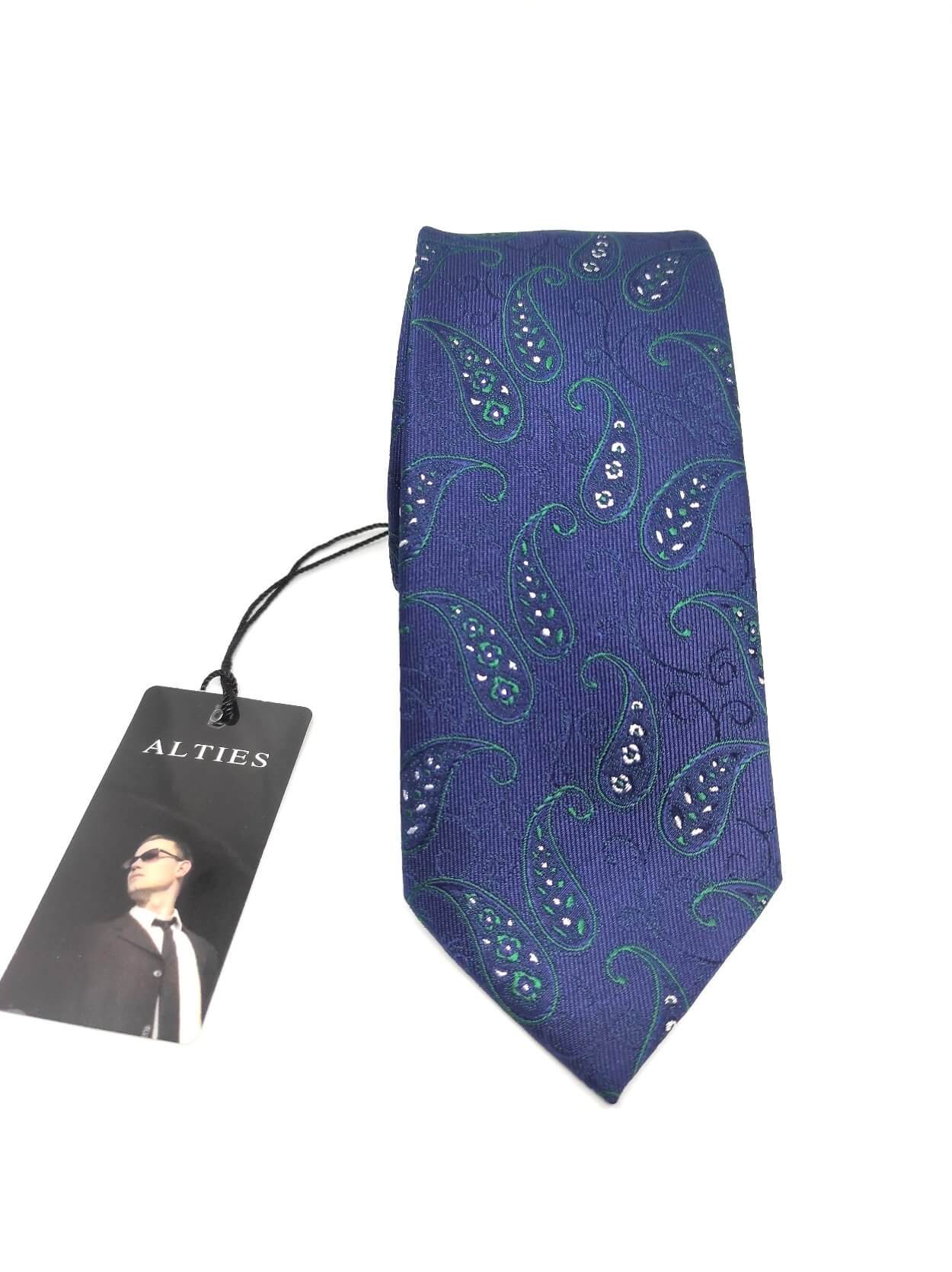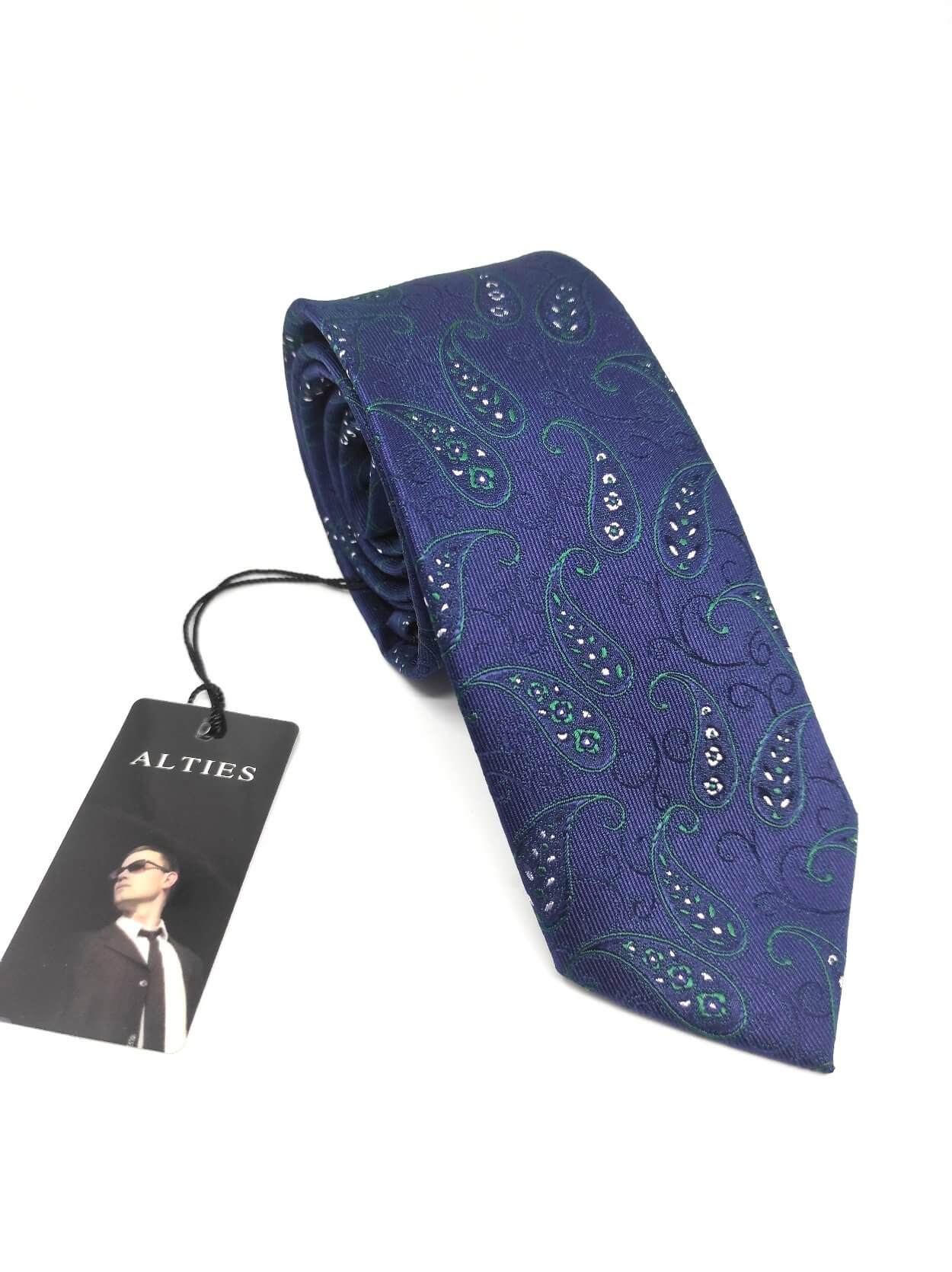 Elegancki krawat męski firmy Alties o klasycznym i modnym kroju,granatowy w zielone listki. Krawat o klasycznym i modnym kroju, wykonany z microfibry. Jest on bardzo ważnym elementem ubioru, dzięki któremu każdy mężczyzna może wnieść do swojego stroju odrobinę koloru. Kompletując garderobę należy pamiętać, aby krawat tworzył spójny zestaw z marynarką lub koszulą. Jego unikatowy wzór z pewnością spełni swoją funkcję w połączeniu z różnymi tkaninami w kilku wariantach kolorystycznych. Ponadto wyraźne i mocne akcenty zdobnicze dodadzą charakteru i pozwolą wyróżnić się stylem. Krawat można dobrać zarówno do karnacji, garnituru jak i temperamentu.