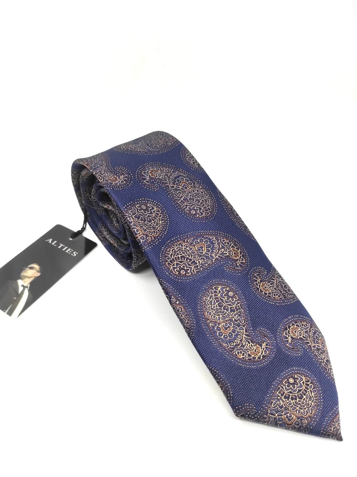 Elegancki krawat męski firmy Alties o klasycznym i modnym kroju,granatowy we wzór turecki brązowo-złoty. Krawat o klasycznym i modnym kroju, wykonany z microfibry. Jest on bardzo ważnym elementem ubioru, dzięki któremu każdy mężczyzna może wnieść do swojego stroju odrobinę koloru. Kompletując garderobę należy pamiętać, aby krawat tworzył spójny zestaw z marynarką lub koszulą. Jego unikatowy wzór z pewnością spełni swoją funkcję w połączeniu z różnymi tkaninami w kilku wariantach kolorystycznych. Ponadto wyraźne i mocne akcenty zdobnicze dodadzą charakteru i pozwolą wyróżnić się stylem. Krawat można dobrać zarówno do karnacji, garnituru jak i temperamentu.