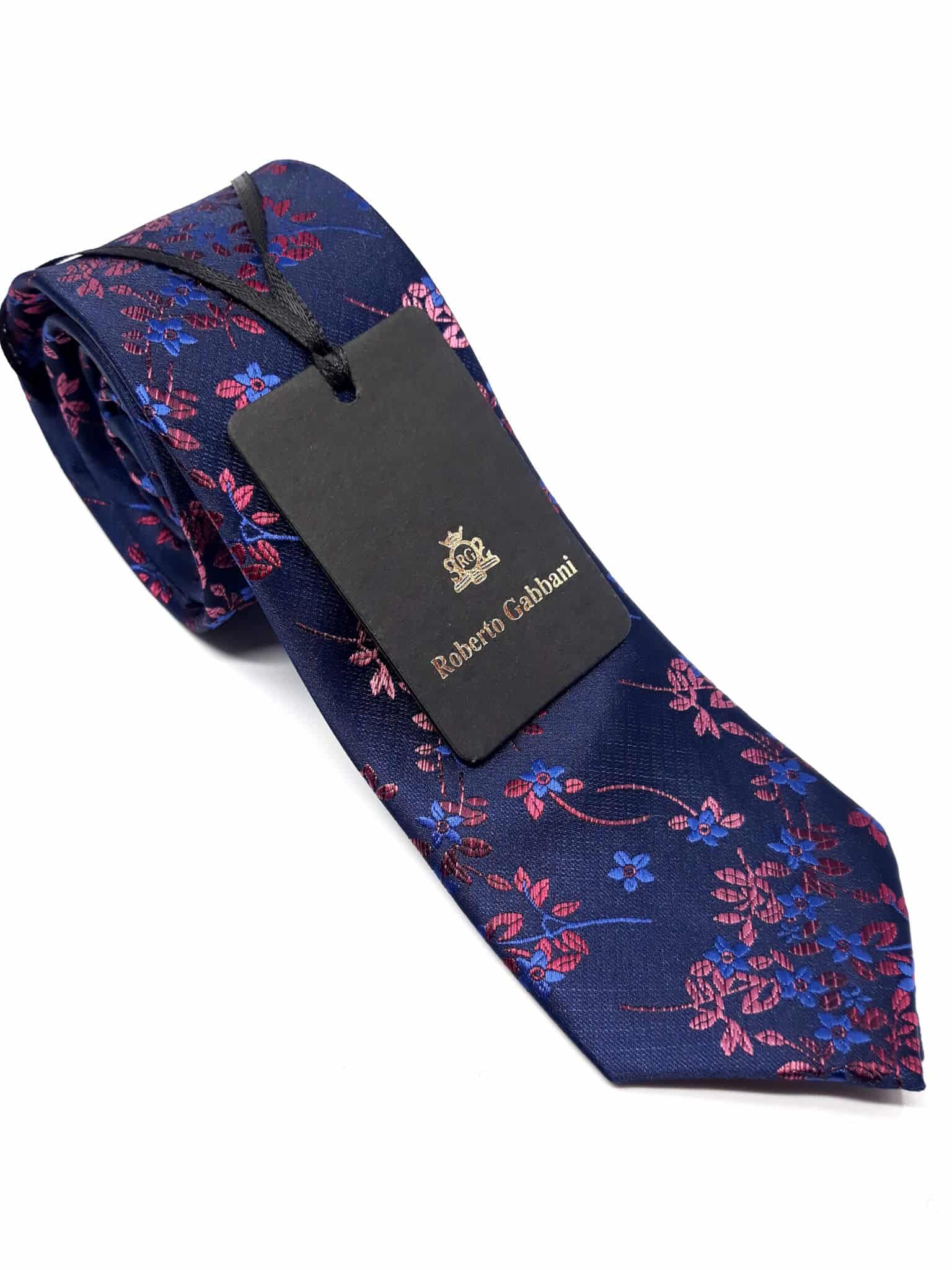 Elegancki krawat męski firmy Roberto Gabbani o klasycznym i modnym, granatowy z motywem kwiatowym. Jest to ponadczasowy i obowiązkowy element męskiej stylizacji nie tylko odświętnej, w dodatku ten najbardziej wyrazisty. Kompletując garderobę należy pamiętać, aby krawat tworzył spójny zestaw z marynarką lub koszulą. Jego unikatowy wzór z pewnością spełni swoją funkcję w połączeniu z gładkimi tkaninami w kilku wariantach kolorystycznych. Ponadto wyraźne i mocne akcenty zdobnicze dodadzą charakteru i pozwolą wyróżnić się stylem. Krawat ten zdecydowanie będzie też idealnym prezentem dla mężczyzny.