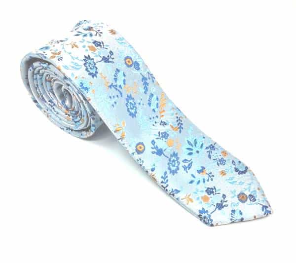 Elegancki krawat męski firmy Piotr, jasno niebieski w kwiatuszki. Krawat o klasycznym i modnym kroju, wykonany ze sztucznego jedwabiu. Jest on bardzo ważnym elementem ubioru, dzięki któremu każdy mężczyzna może wnieść do swojego stroju odrobinę koloru. Kompletując garderobę należy pamiętać, aby krawat tworzył spójny zestaw z marynarką lub koszulą. Jego unikatowy wzór z pewnością spełni swoją funkcję w połączeniu z różnymi tkaninami w kilku wariantach kolorystycznych. Ponadto wyraźne i mocne akcenty zdobnicze dodadzą charakteru i pozwolą wyróżnić się stylem. Krawat można dobrać zarówno do karnacji, garnituru jak i temperamentu.