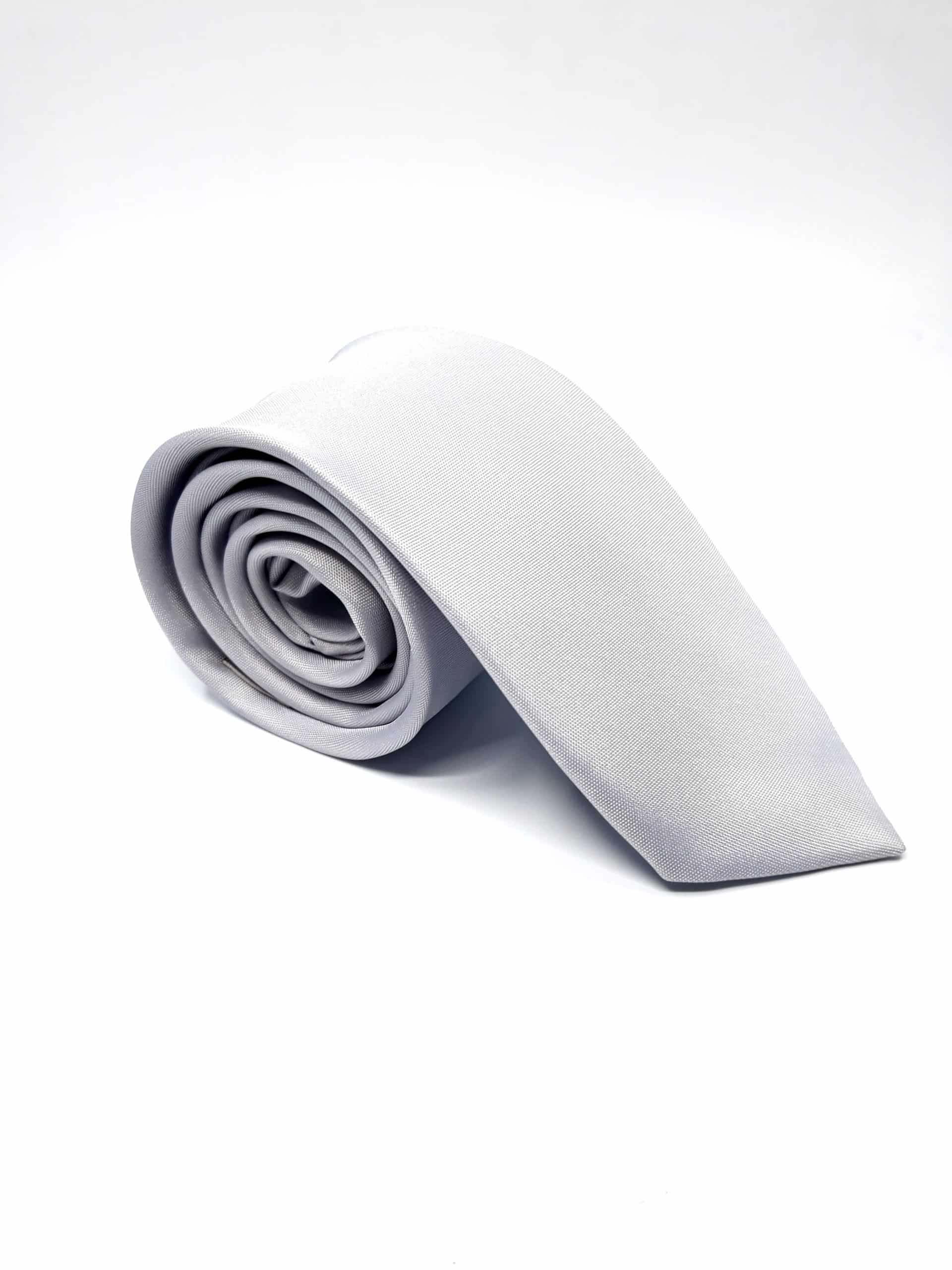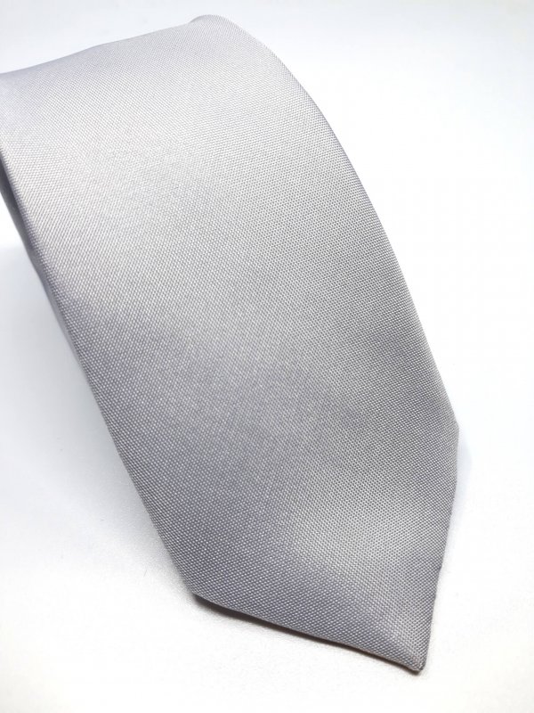 Elegancki krawat jasny popiel o klasycznym i modnym kroju-śledzik. Jest on bardzo ważnym elementem ubioru, dzięki któremu każdy mężczyzna może wnieść do swojego stroju odrobinę koloru. Kompletując garderobę należy pamiętać, aby krawat tworzył spójny zestaw z marynarką lub koszulą. Krawat można dobrać zarówno do karnacji, garnituru jak i temperamentu.