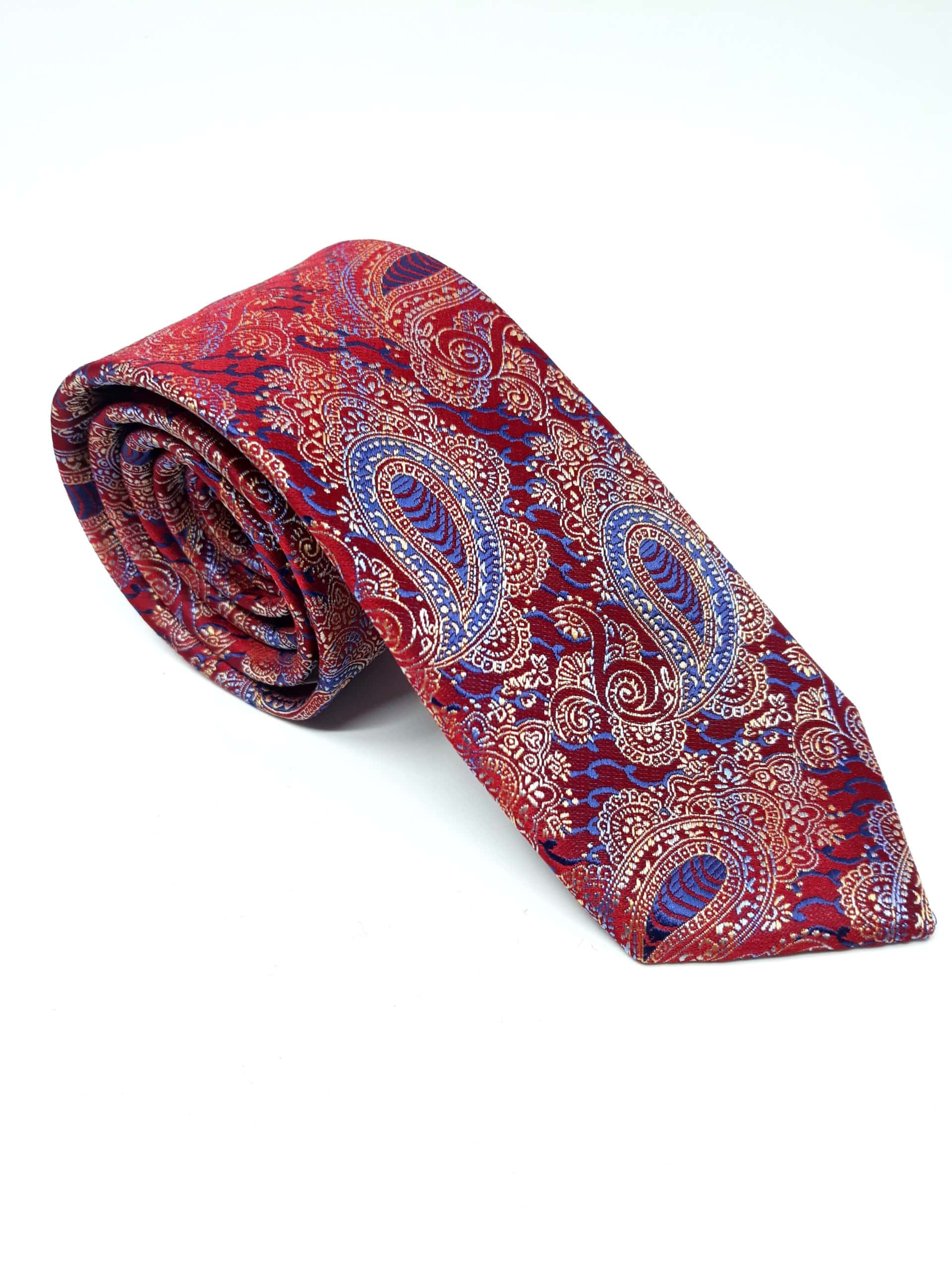 Elegancki krawat męski firmy Piotr o klasycznym i modnym kroju w kolorowy wzór turecki.