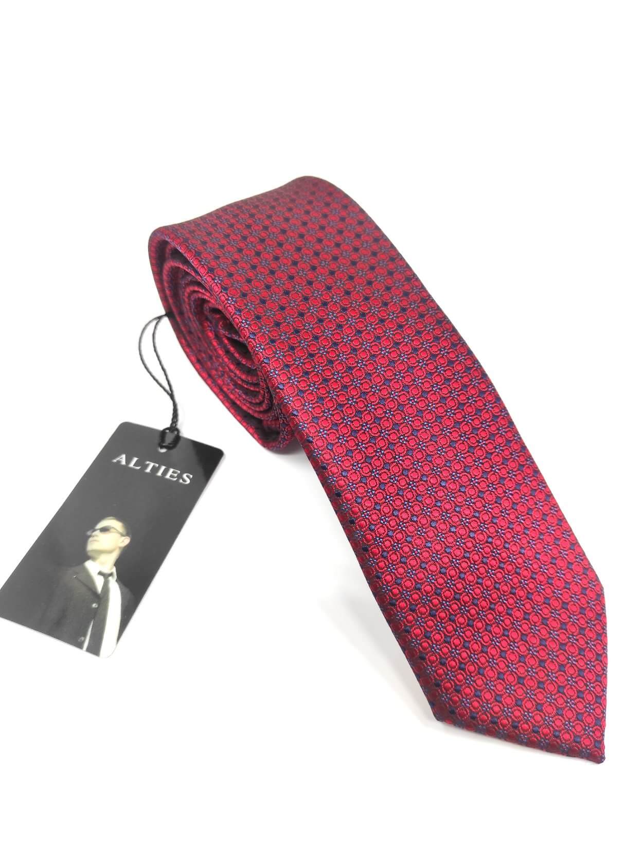 Elegancki krawat męski firmy Alties o klasycznym i modnym kroju,czerwono-granatowe kropeczki. Krawat o klasycznym i modnym kroju, wykonany z microfibry. Jest on bardzo ważnym elementem ubioru, dzięki któremu każdy mężczyzna może wnieść do swojego stroju odrobinę koloru. Kompletując garderobę należy pamiętać, aby krawat tworzył spójny zestaw z marynarką lub koszulą. Jego unikatowy wzór z pewnością spełni swoją funkcję w połączeniu z różnymi tkaninami w kilku wariantach kolorystycznych. Ponadto wyraźne i mocne akcenty zdobnicze dodadzą charakteru i pozwolą wyróżnić się stylem. Krawat można dobrać zarówno do karnacji, garnituru jak i temperamentu.