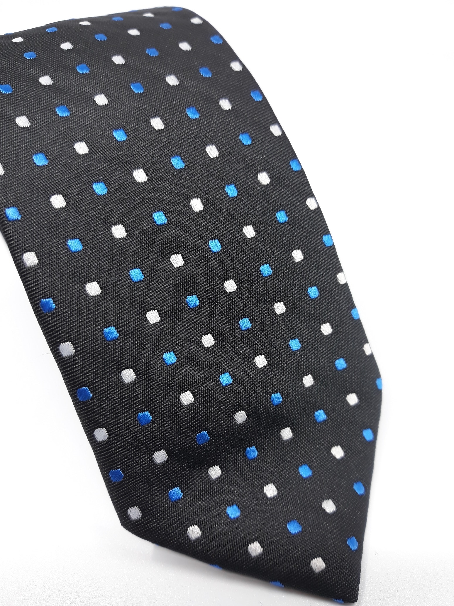 Elegancki krawat męski firmy Piotr o klasycznym i modnym kroju w kolorze czarnym w kwadraty.Krawat o klasycznym i modnym kroju, wykonany ze sztucznego jedwabiu. Jest on bardzo ważnym elementem ubioru, dzięki któremu każdy mężczyzna może wnieść do swojego stroju odrobinę koloru. Kompletując garderobę należy pamiętać, aby krawat tworzył spójny zestaw z marynarką lub koszulą. Jego unikatowy wzór z pewnością spełni swoją funkcję w połączeniu z różnymi tkaninami w kilku wariantach kolorystycznych. Ponadto wyraźne i mocne akcenty zdobnicze dodadzą charakteru i pozwolą wyróżnić się stylem. Krawat można dobrać zarówno do karnacji, garnituru jak i temperamentu.