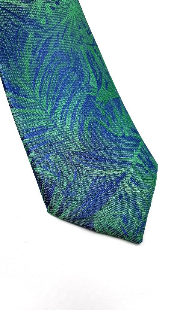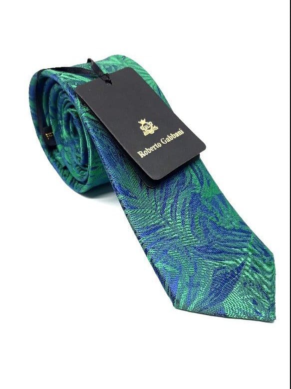 Elegancki krawat męski firmy Roberto Gabbani o klasycznym i modnym kroju w kolorze zielonym w liście z dżungli.Krawat o klasycznym i modnym kroju, wykonany ze sztucznego jedwabiu. Jest on bardzo ważnym elementem ubioru, dzięki któremu każdy mężczyzna może wnieść do swojego stroju odrobinę koloru. Kompletując garderobę należy pamiętać, aby krawat tworzył spójny zestaw z marynarką lub koszulą. Jego unikatowy wzór z pewnością spełni swoją funkcję w połączeniu z różnymi tkaninami w kilku wariantach kolorystycznych. Ponadto wyraźne i mocne akcenty zdobnicze dodadzą charakteru i pozwolą wyróżnić się stylem. Krawat można dobrać zarówno do karnacji, garnituru jak i temperamentu.