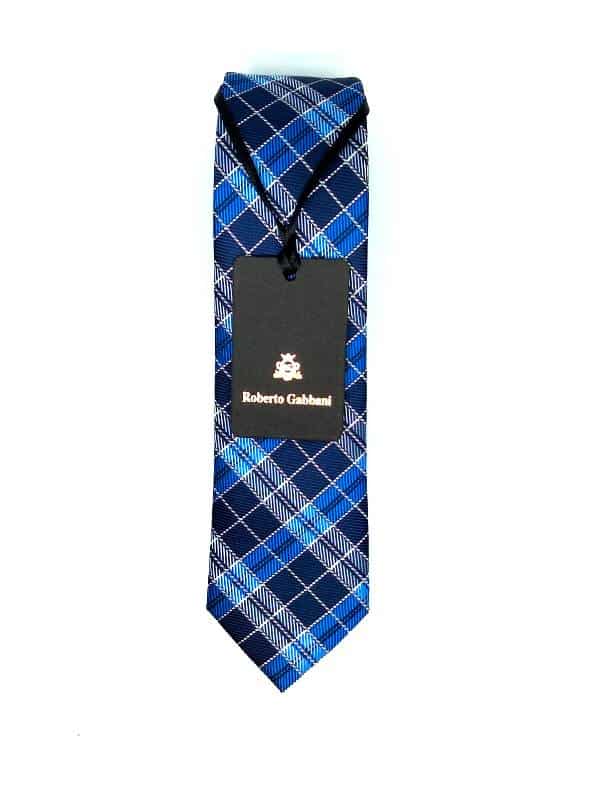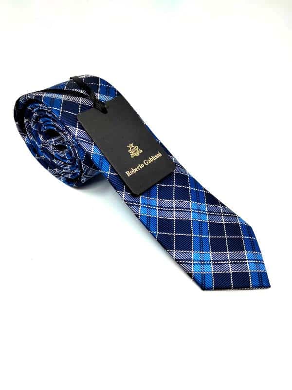 Elegancki krawat męski firmy Roberto Gabbani – niebieska krata. Krawat o klasycznym i modnym kroju, wykonany ze sztucznego jedwabiu. Jest on bardzo ważnym elementem ubioru, dzięki któremu każdy mężczyzna może wnieść do swojego stroju odrobinę koloru. Kompletując garderobę należy pamiętać, aby krawat tworzył spójny zestaw z marynarką lub koszulą. Jego unikatowy wzór z pewnością spełni swoją funkcję w połączeniu z różnymi tkaninami w kilku wariantach kolorystycznych. Ponadto wyraźne i mocne akcenty zdobnicze dodadzą charakteru i pozwolą wyróżnić się stylem. Krawat można dobrać zarówno do karnacji, garnituru jak i temperamentu.