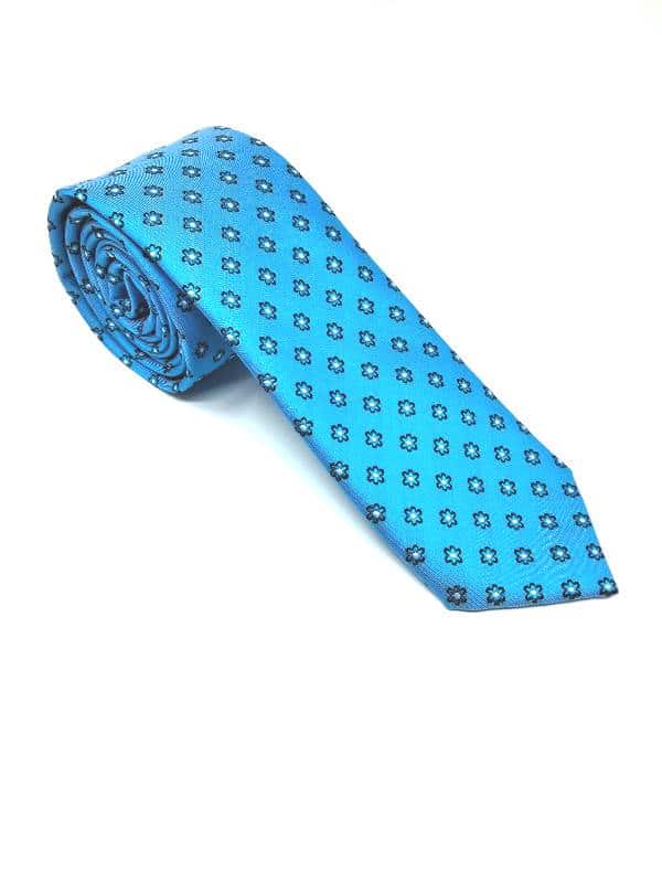 Elegancki krawat męski firmy Piotr o klasycznym i modnym kroju, niebieski w kwiatki. Wykonany ze sztucznego jedwabiu. Jest on bardzo ważnym elementem ubioru, dzięki któremu każdy mężczyzna może wnieść do swojego stroju odrobinę koloru. Kompletując garderobę należy pamiętać, aby krawat tworzył spójny zestaw z marynarką lub koszulą. Jego unikatowy wzór z pewnością spełni swoją funkcję w połączeniu z różnymi tkaninami w kilku wariantach kolorystycznych. Ponadto wyraźne i mocne akcenty zdobnicze dodadzą charakteru i pozwolą wyróżnić się stylem. Krawat można dobrać zarówno do karnacji, garnituru jak i temperamentu.