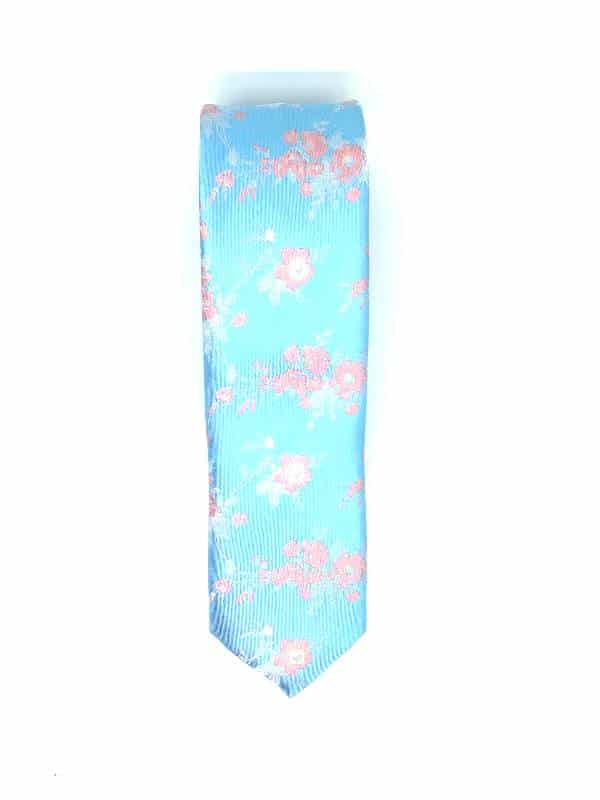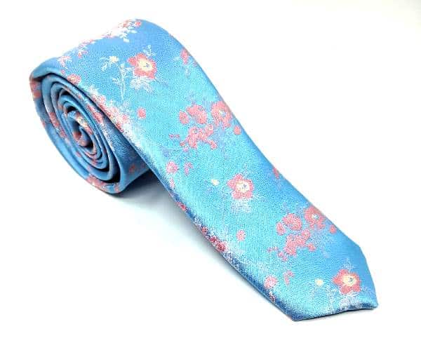 Elegancki Krawat Niebieski Pudrowe Kwiatki