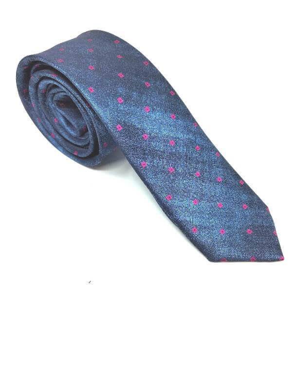 Elegancki krawat męski firmy Piotr o klasycznym i modnym kroju w kolorze niebieskim w różowe kwadraty.Krawat o klasycznym i modnym kroju, wykonany ze sztucznego jedwabiu. Jest on bardzo ważnym elementem ubioru, dzięki któremu każdy mężczyzna może wnieść do swojego stroju odrobinę koloru. Kompletując garderobę należy pamiętać, aby krawat tworzył spójny zestaw z marynarką lub koszulą. Jego unikatowy wzór z pewnością spełni swoją funkcję w połączeniu z różnymi tkaninami w kilku wariantach kolorystycznych. Ponadto wyraźne i mocne akcenty zdobnicze dodadzą charakteru i pozwolą wyróżnić się stylem. Krawat można dobrać zarówno do karnacji, garnituru jak i temperamentu.